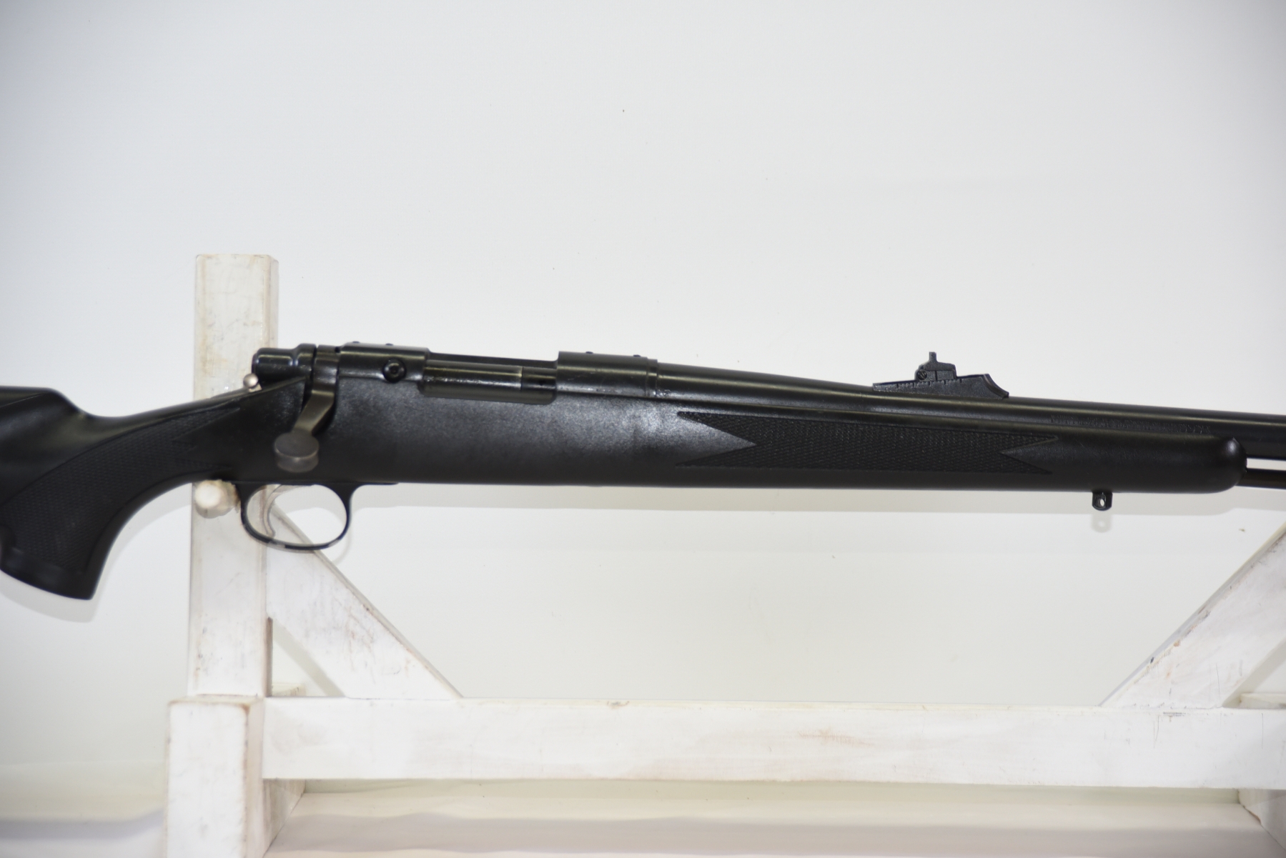Synthetic stock shows scratches, scuffs, few light dents; condition is very good.