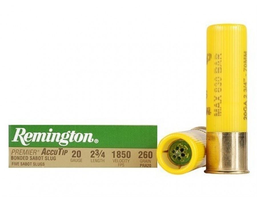 Remington Premier AccuTip Bonded Sabot Slug 20 Gauge 2-3/4" 260 Grain (5 Rounds). This listing is for one brand new, unopened, factory sealed unit. UPC: 47700506906.
