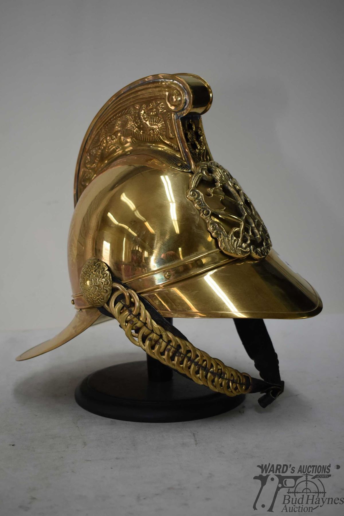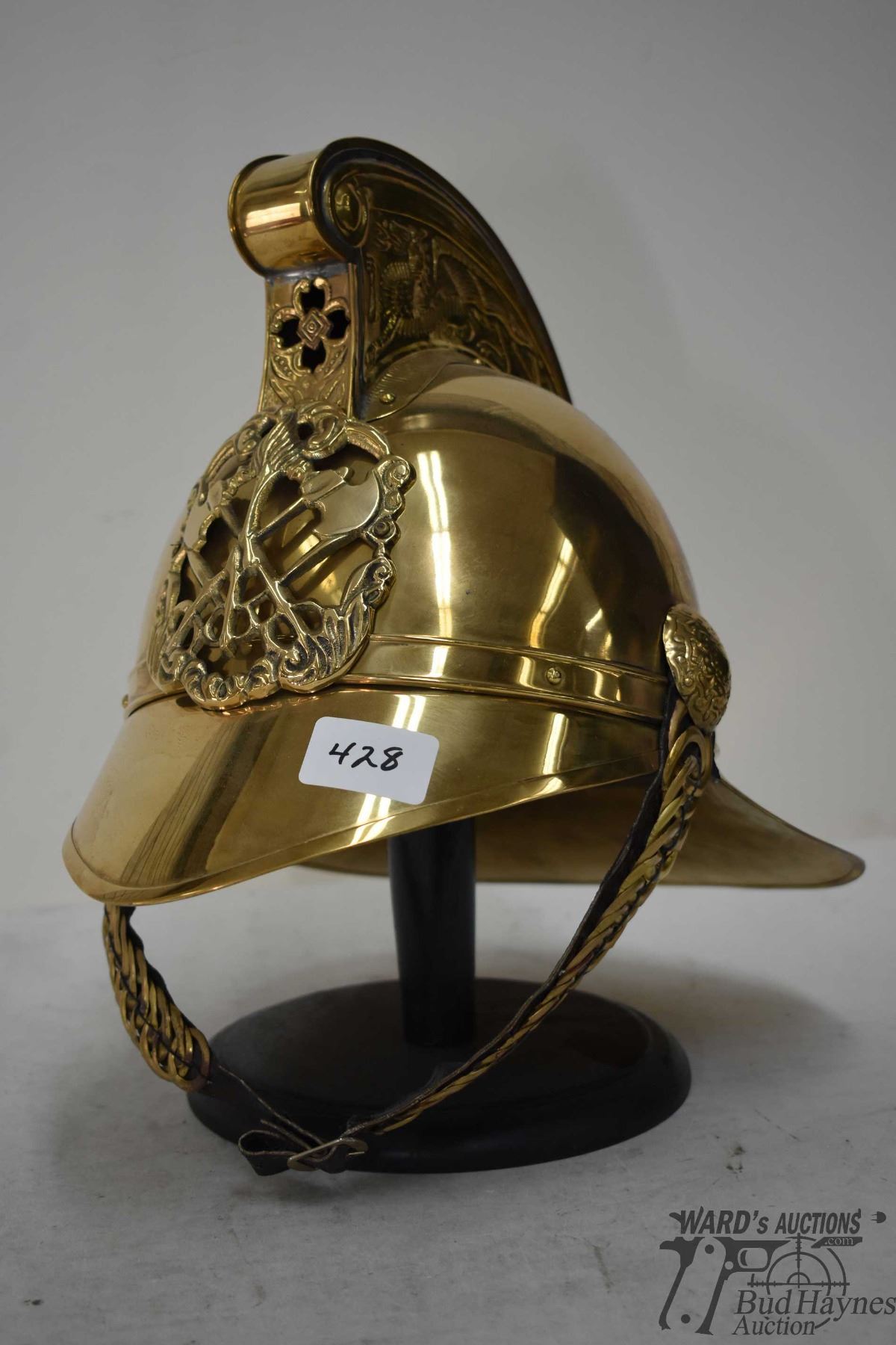 Replica Victorian firemans helmet w/ stand