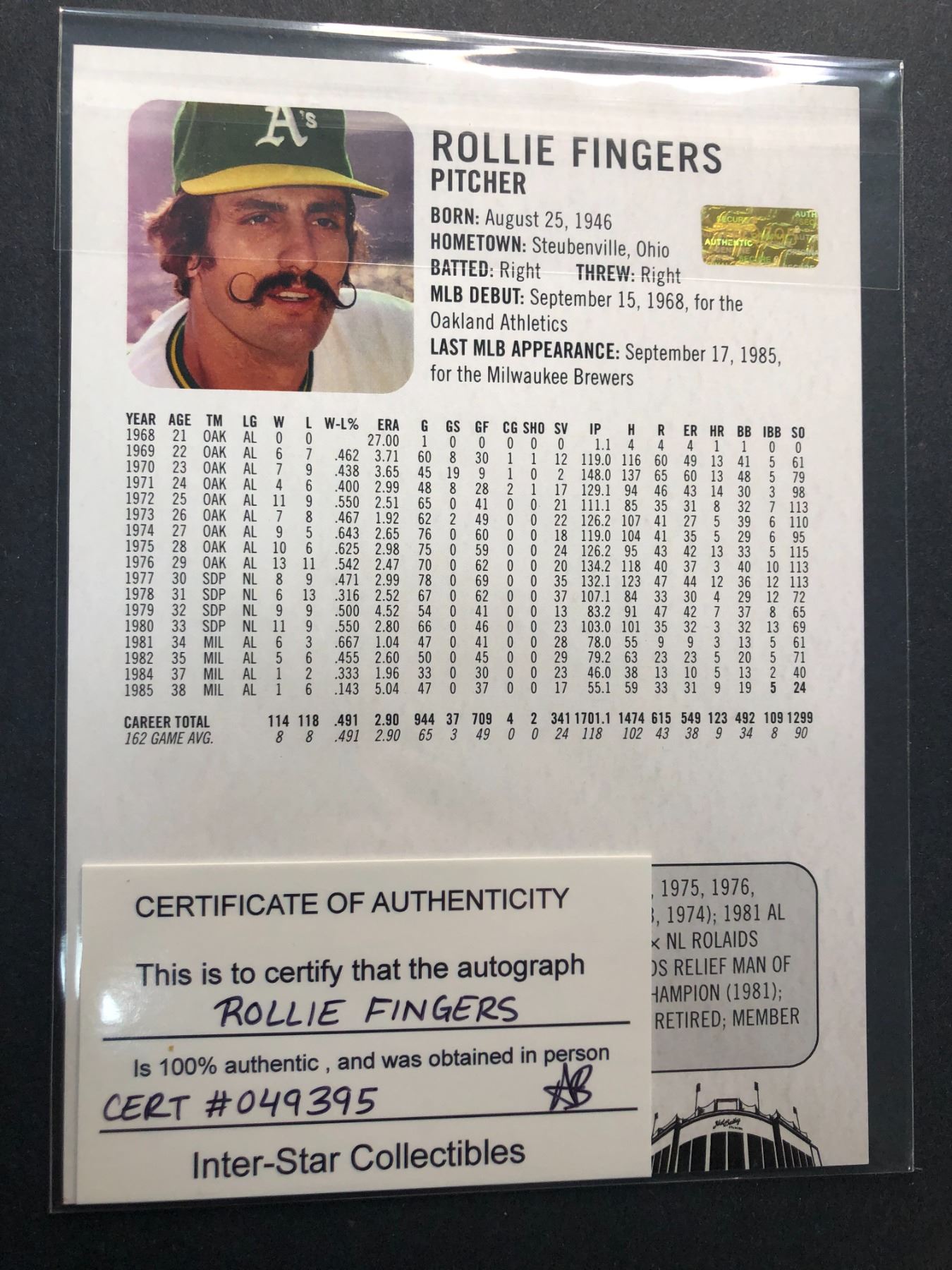 Rollie Fingers AUTOGRAPHED 5x7 Card - Athletics
