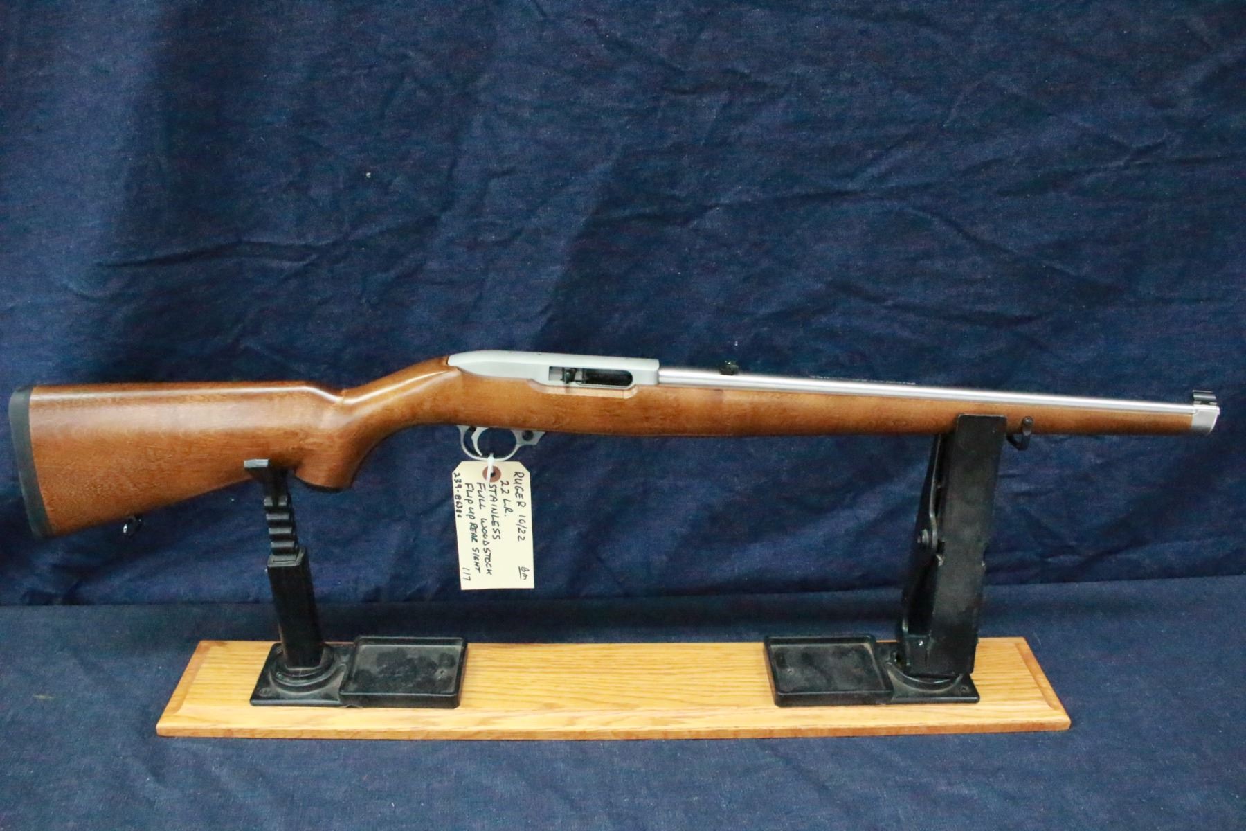 22 LR; Stainless; Full Wood Stock; Semi-Auto; with Magazine; Flip-up Rear Sight; Good Bore; S/N 239-86380
