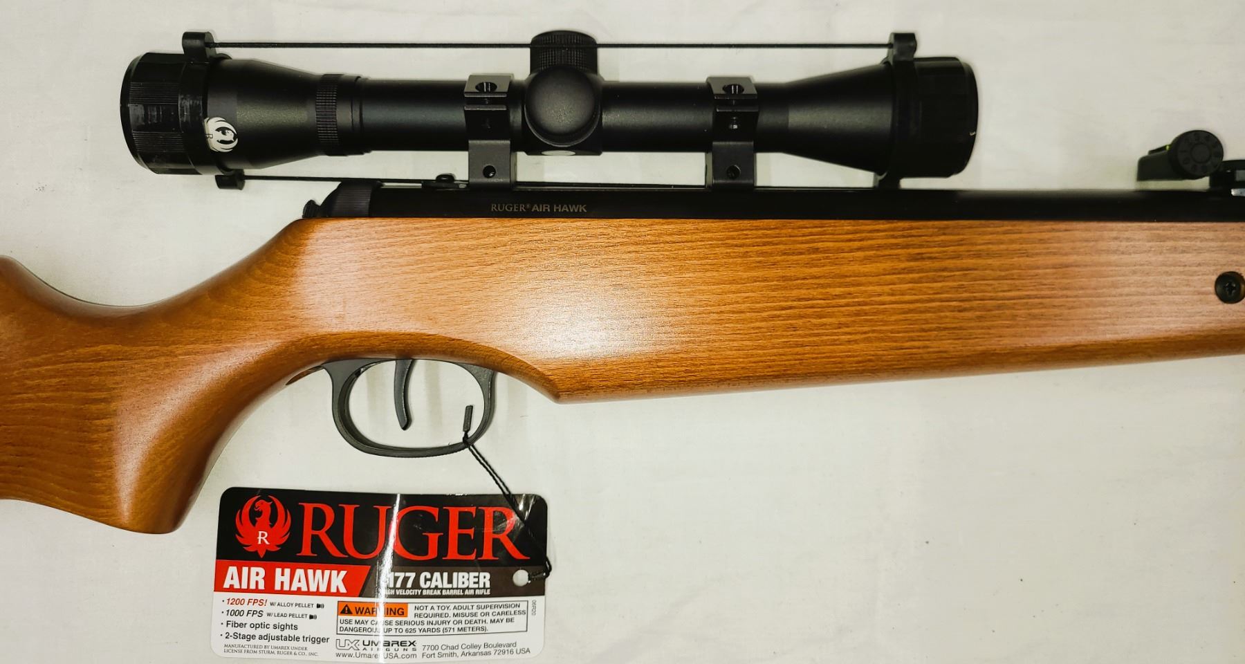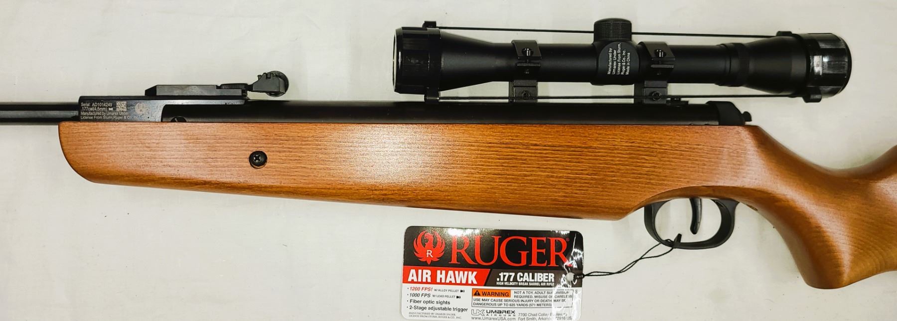 Ruger Airhawk Air Rifle 1200 fps .177 Pellet c/w Scope AS NEW