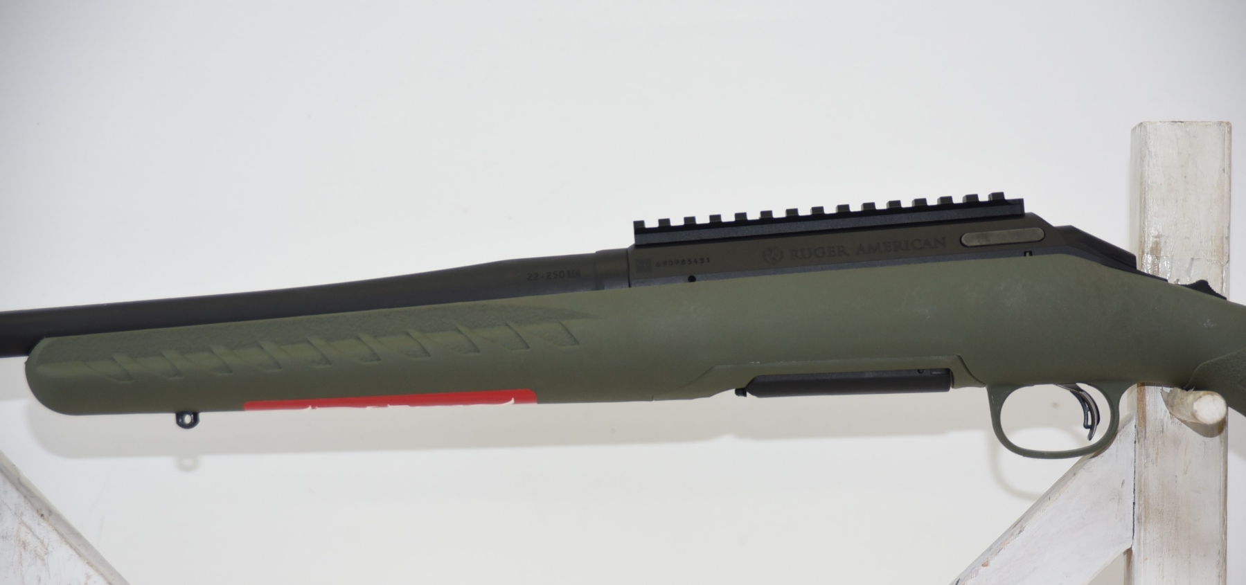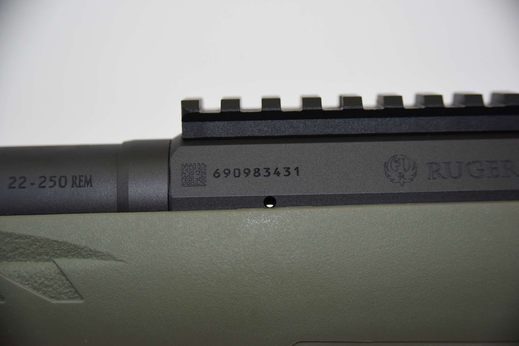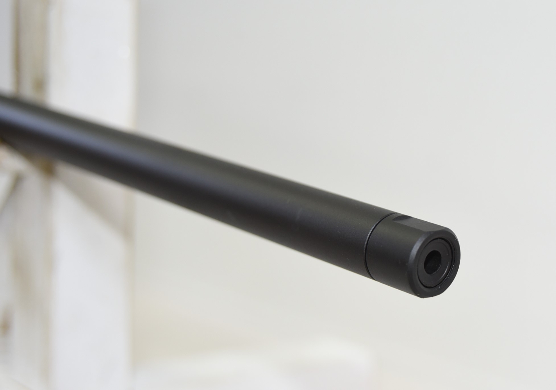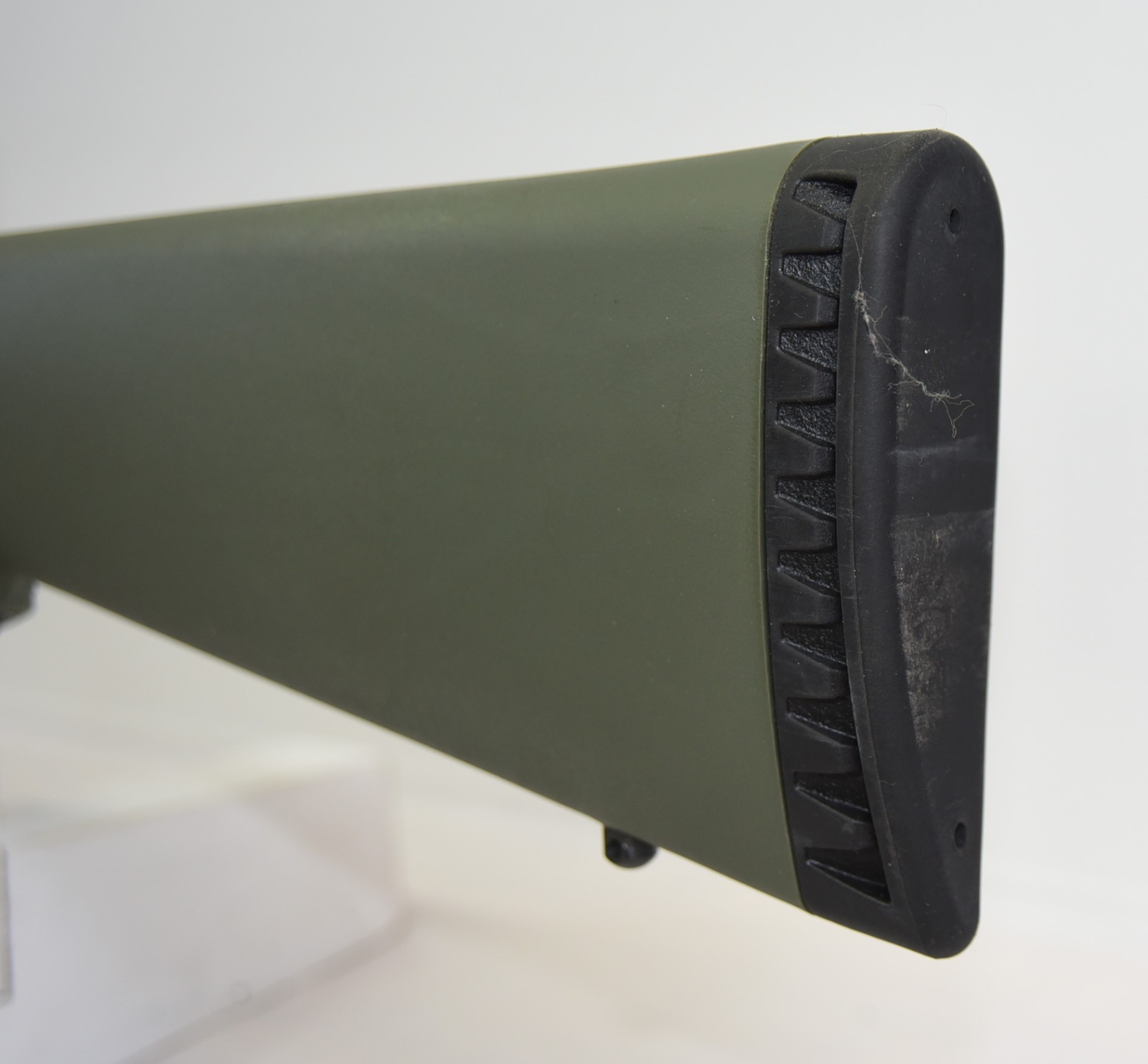 Synthetic stock shows few light scuffs, fine scratches; condition is excellent.