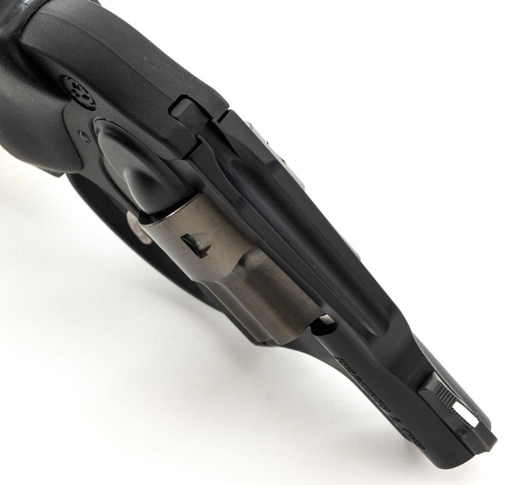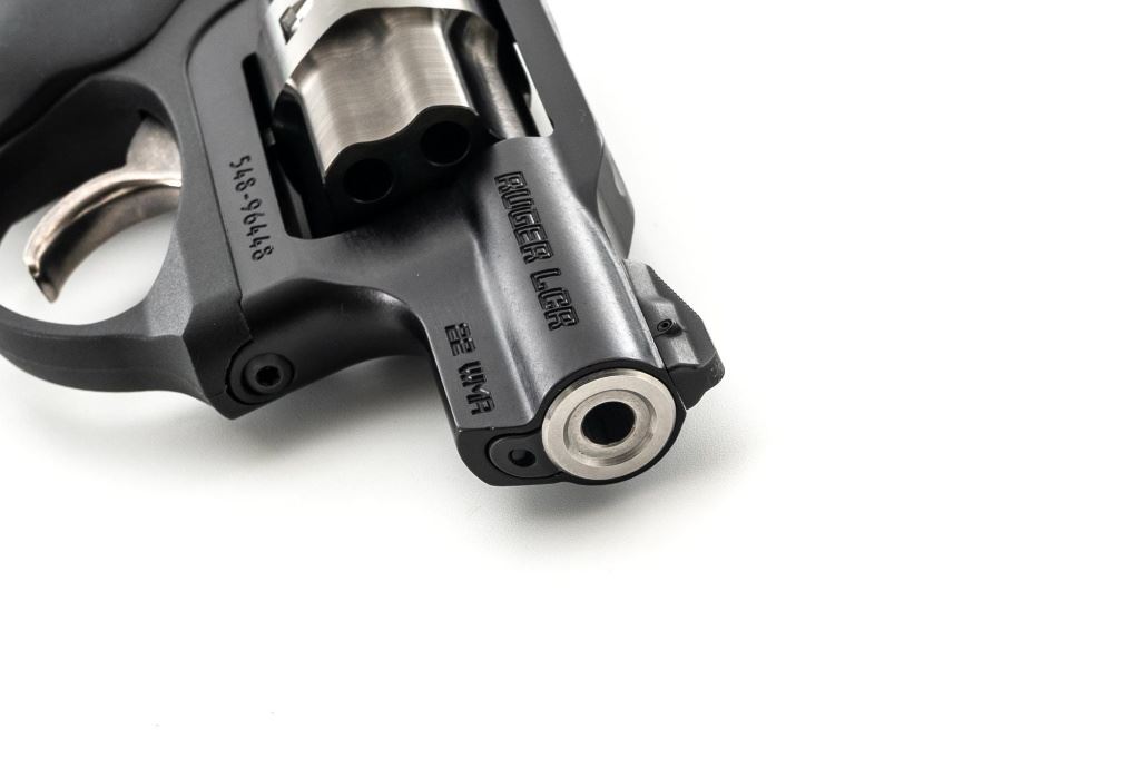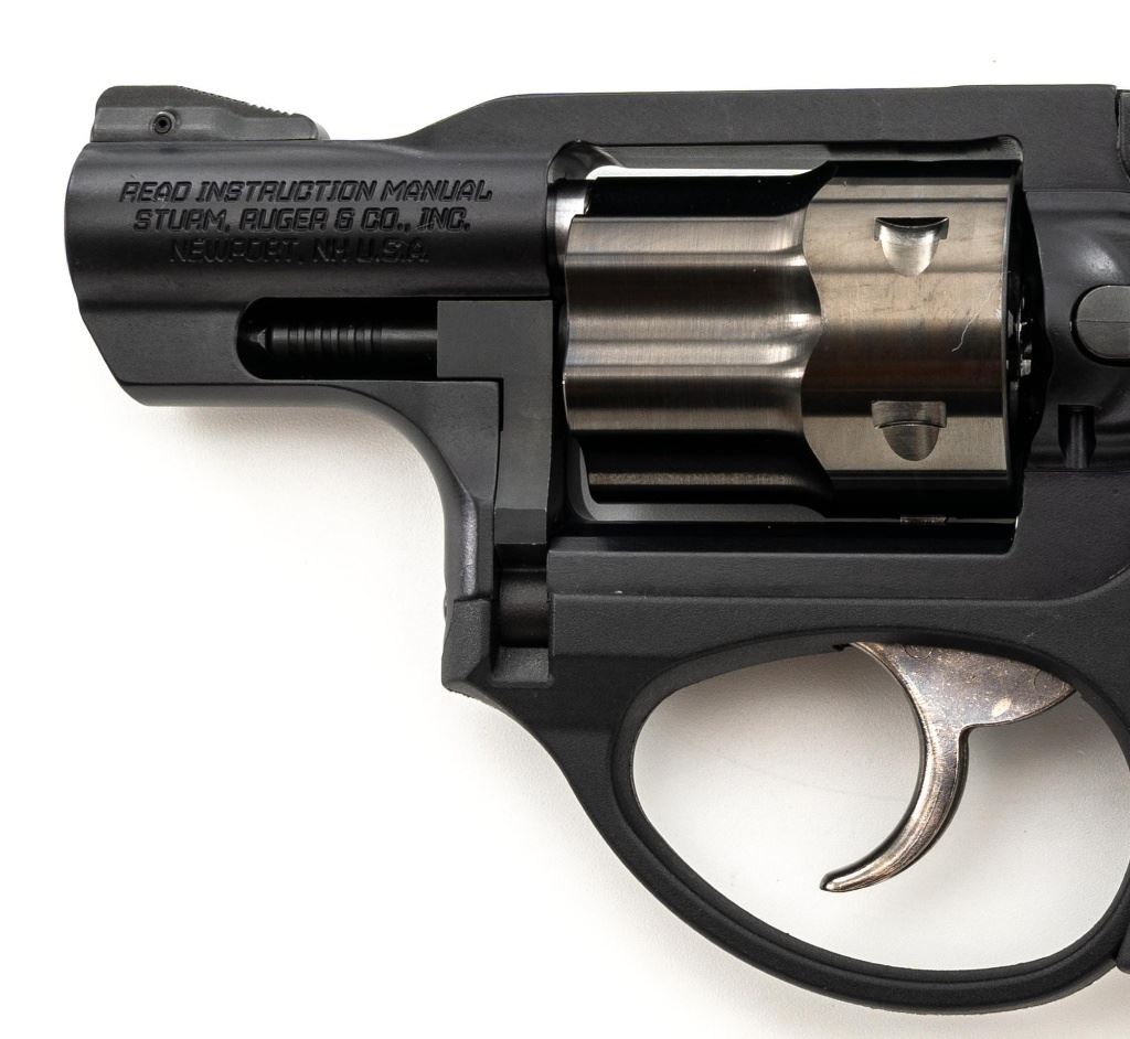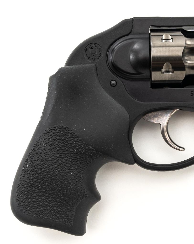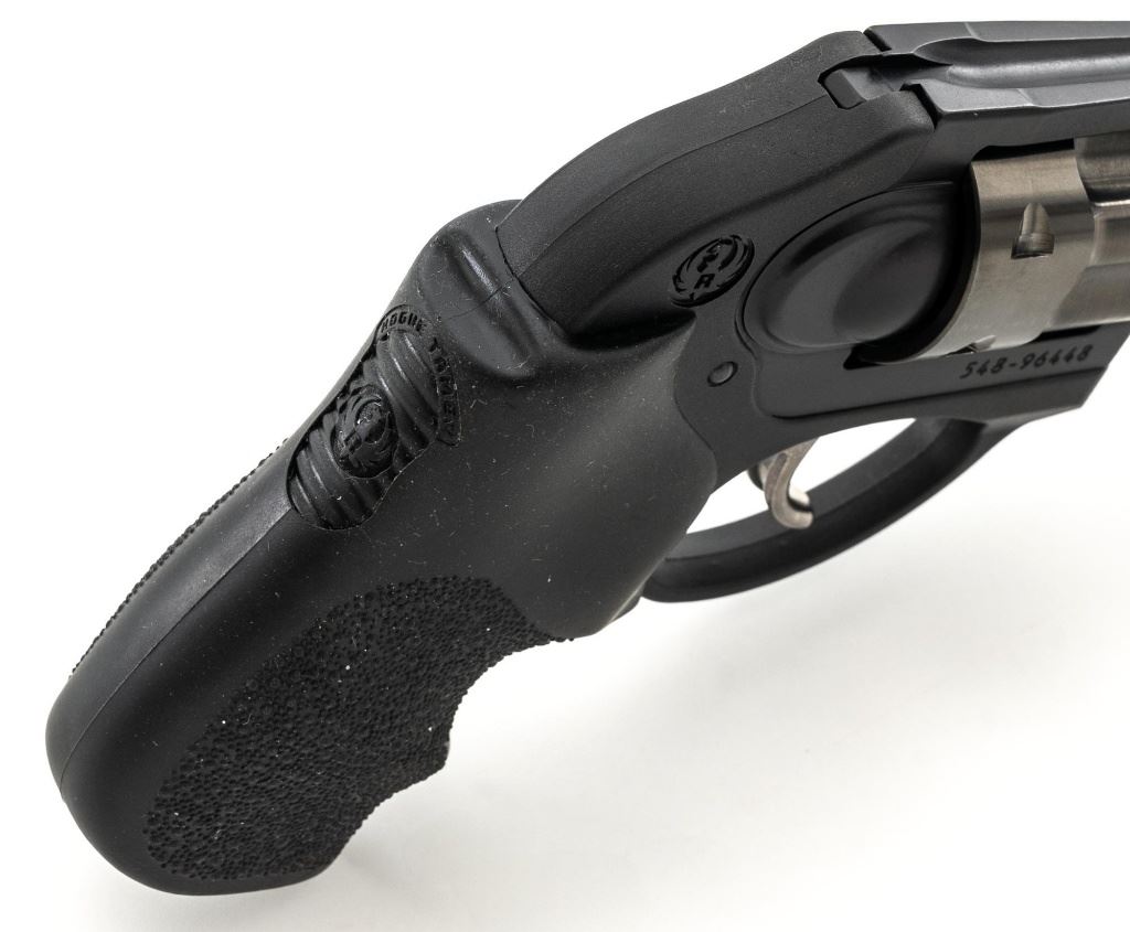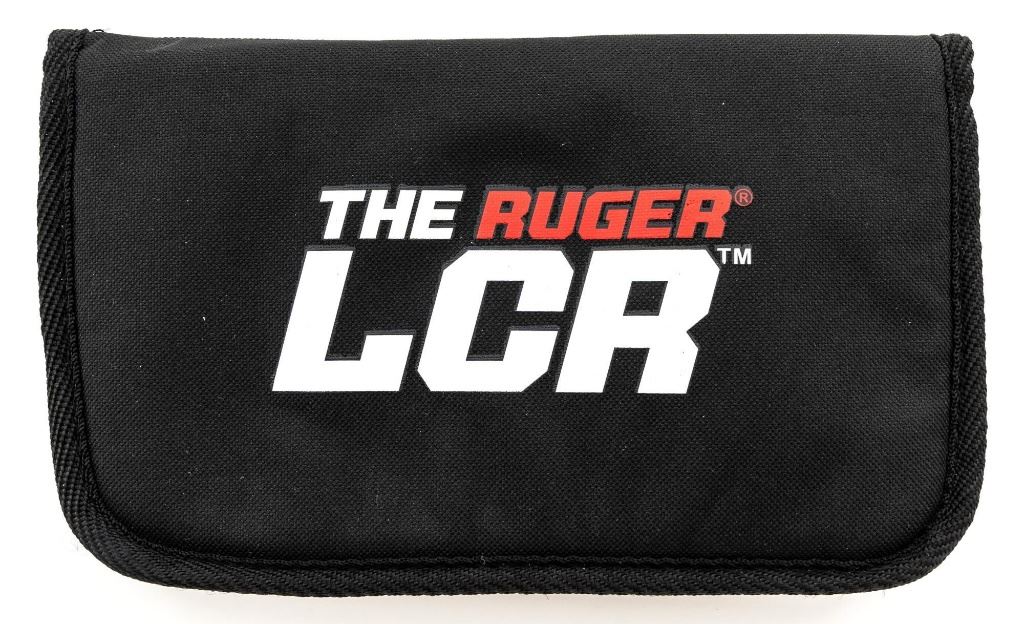 Ruger LCR Double Action Revolver, #548-96448, .22 WMR cal., 2" barrel, matte black finish, fluted black stainless cylinder, Hogue Tamer textured rubber monogrip, pinned ramped white blade front sight and square-notched rear sight. Includes factory cardboard box with matching end label and Ruger LCR soft case. Mfg'd 2015. Revolver appears as new, with only minor handling marks. Action is crisp, bore is excellent. Est.: $400-$600. (Modern/PPT)