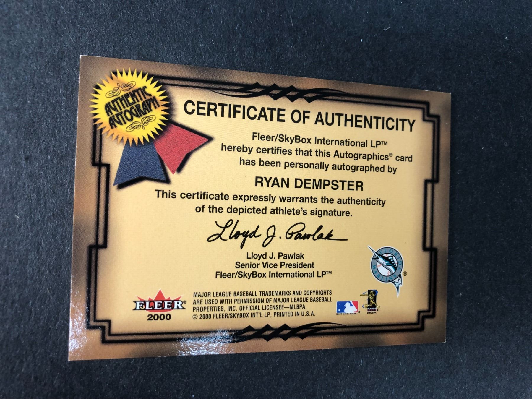 Canadian born Ryan Dempster certified autograph card