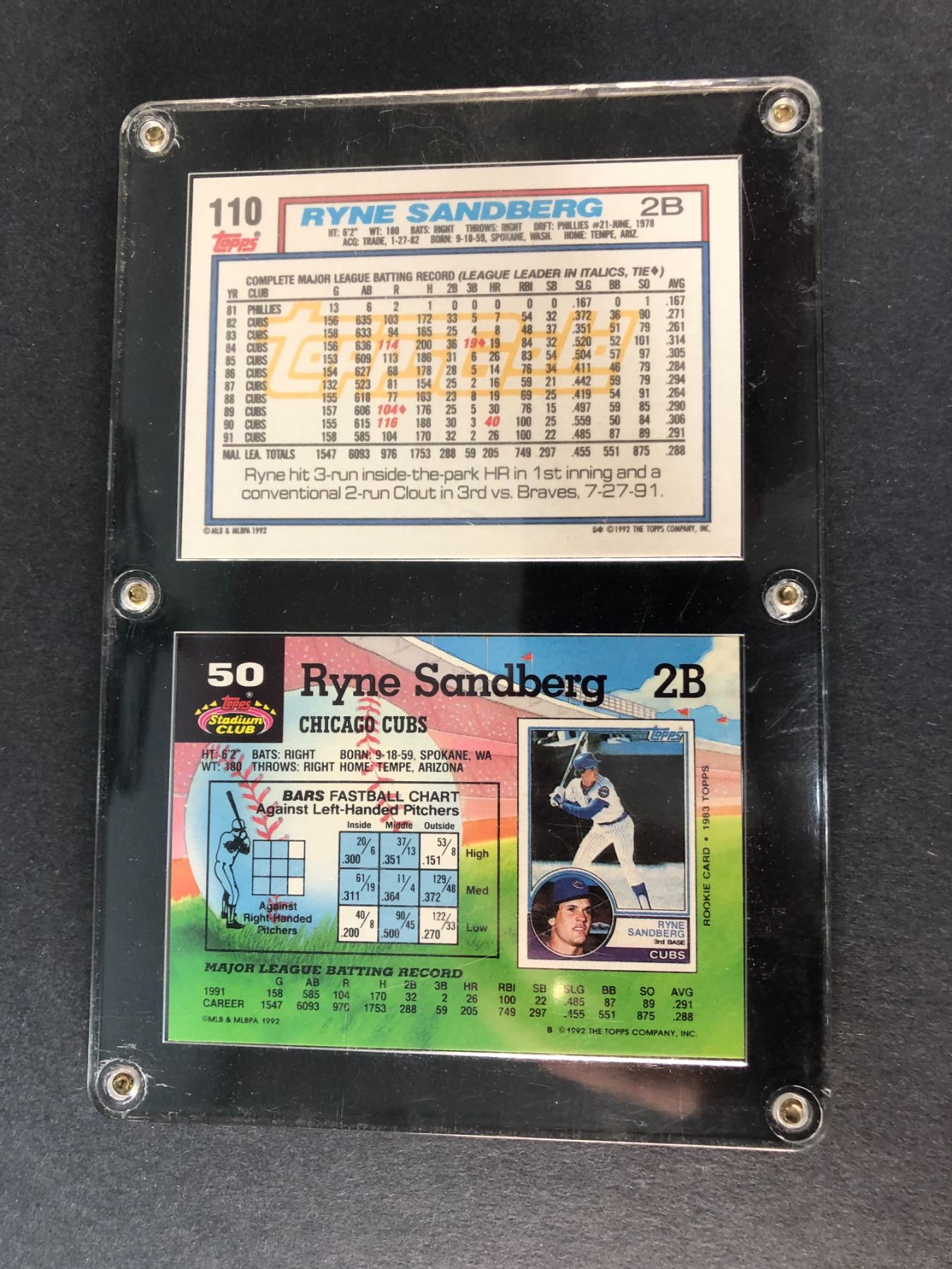 Ryne Sandberg 2 Card Lot w/ Display Board