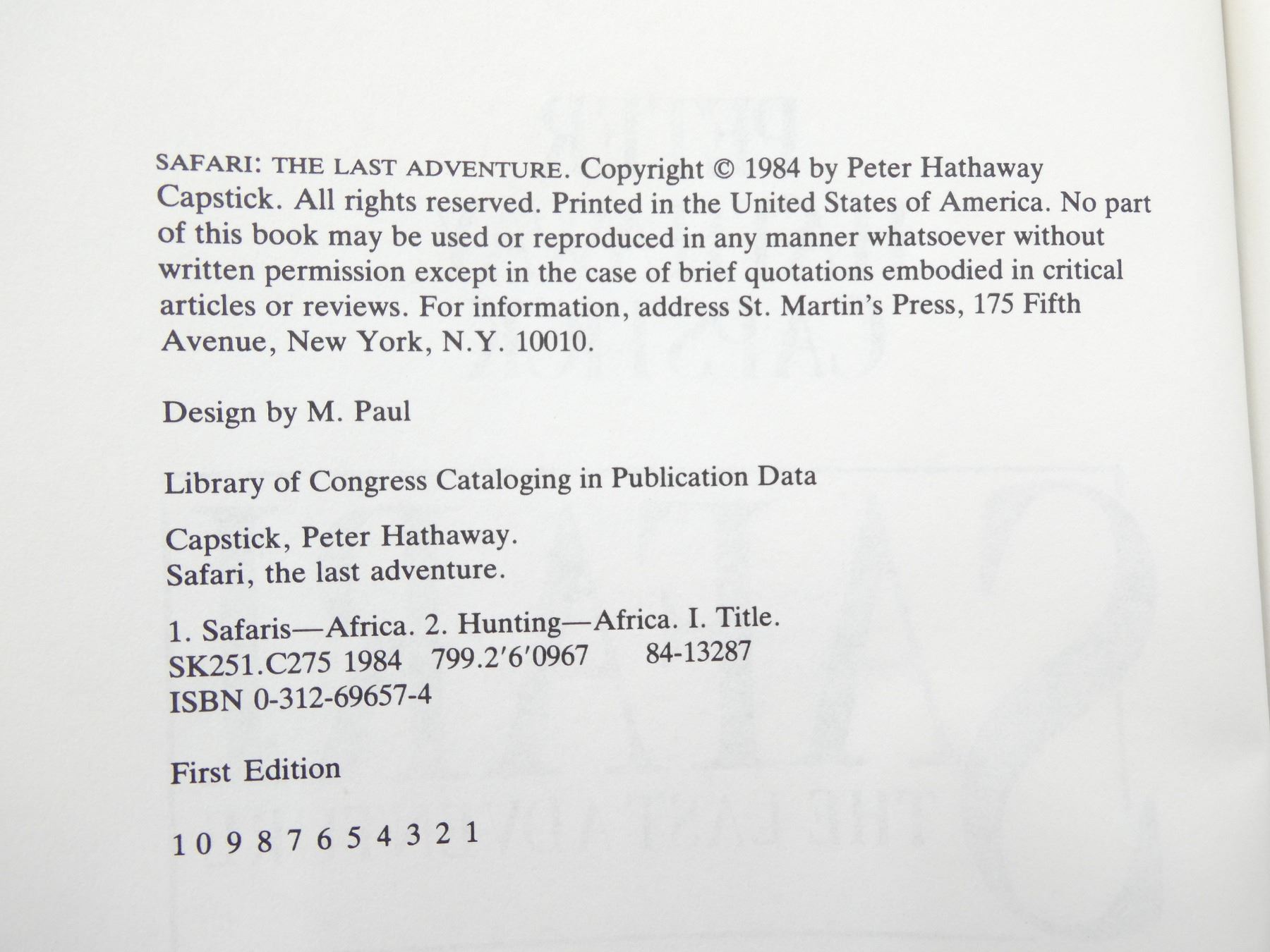 (1) BY PETER HATHAWAY CAPSTICK, HARD COVER WITH DUST COVER, ISBN: 0-312-69657-4. SEE PHOTOS.