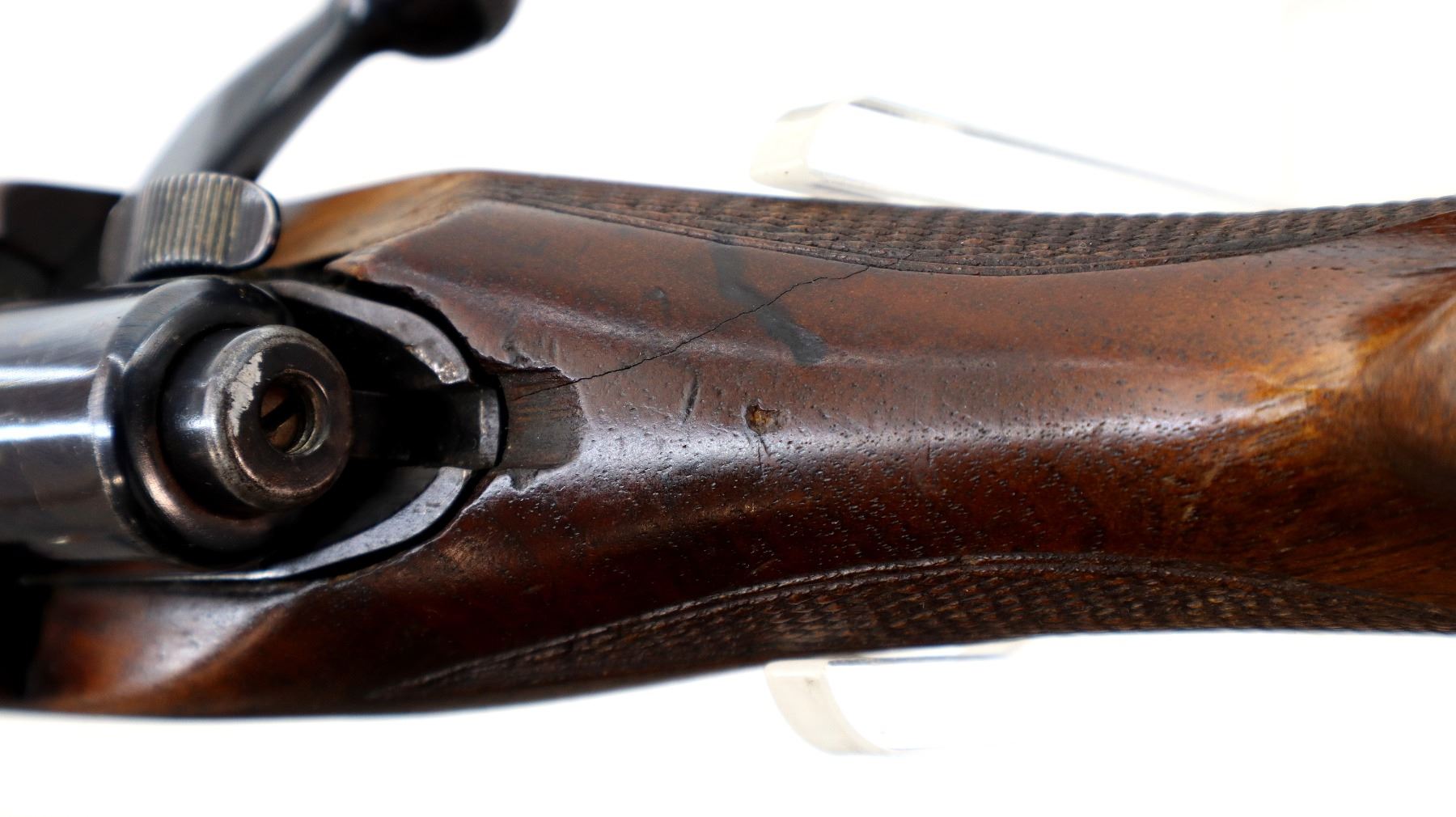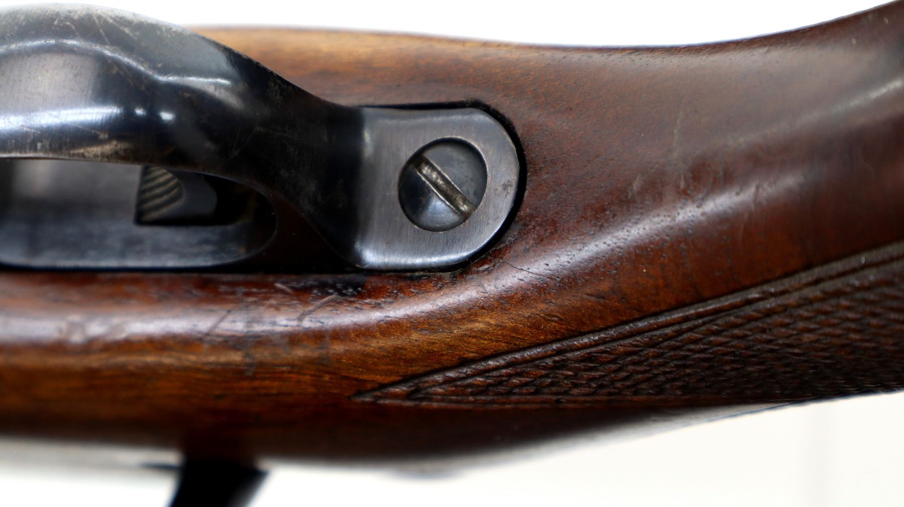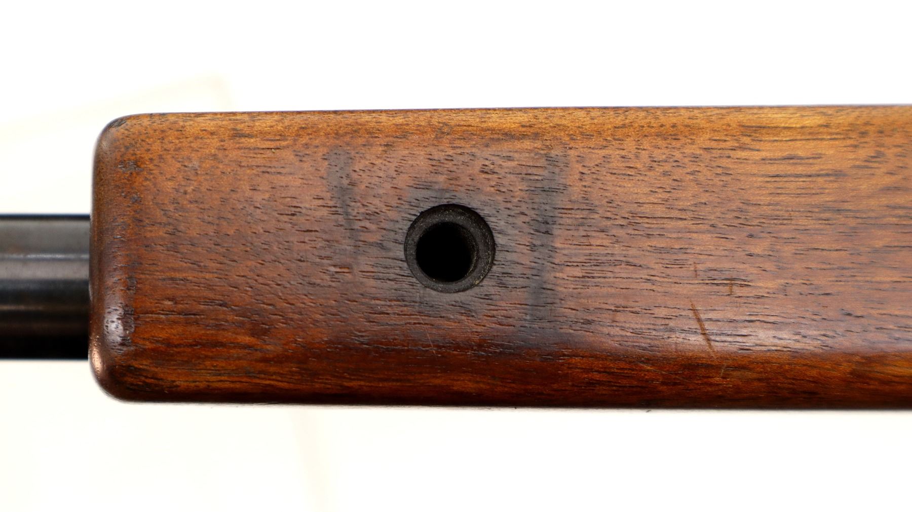 Wear: Metal finish shows some light rust speckles, scratches, handling marks and wear. Stock shows marks, scratches and wear.