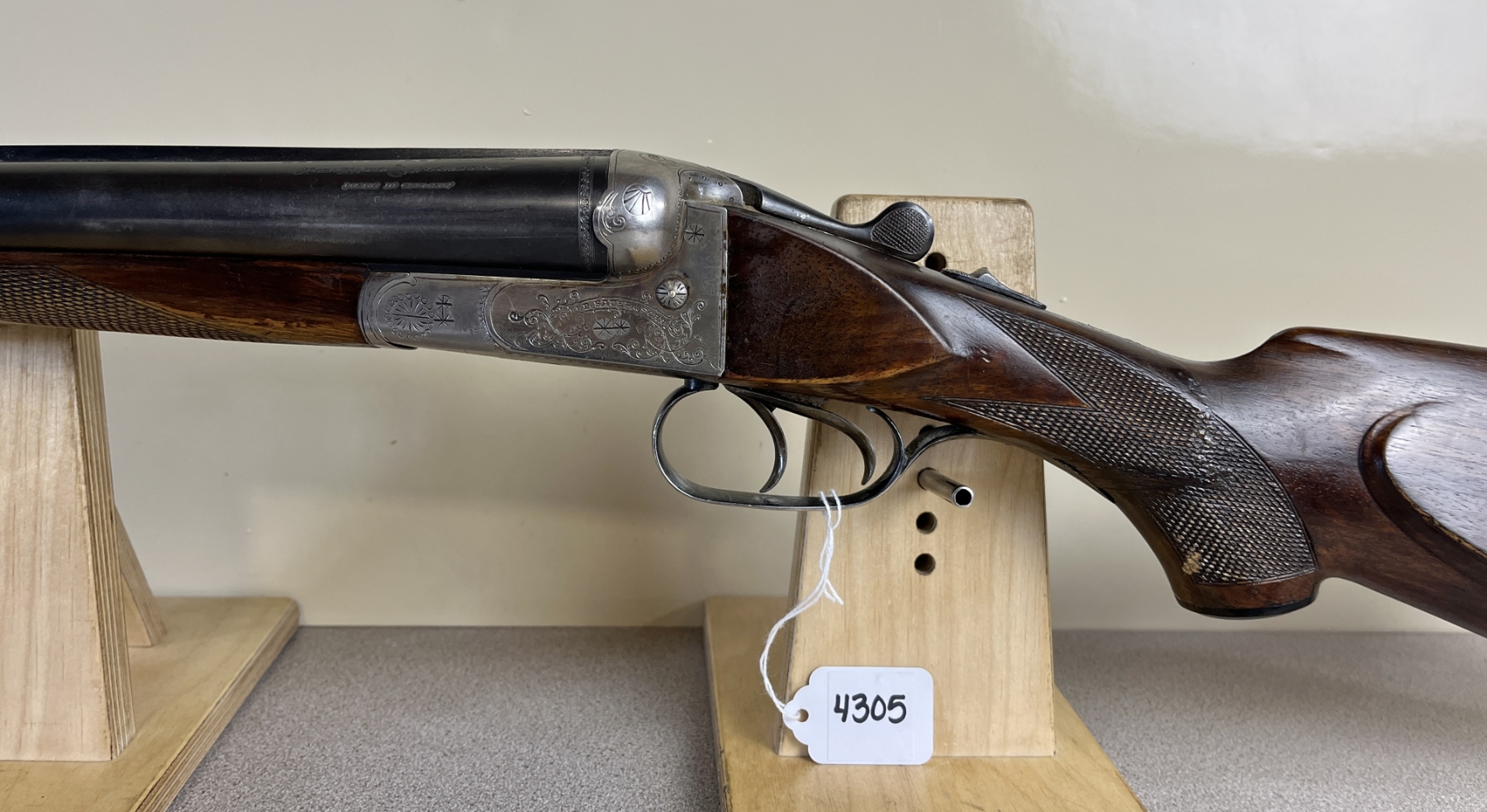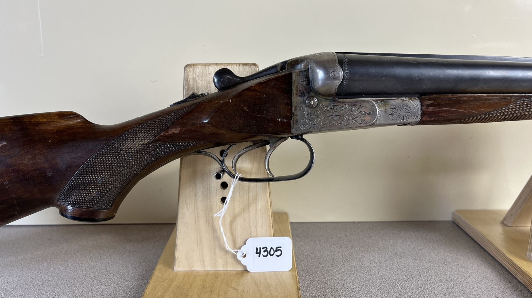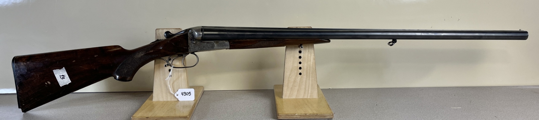 CONDITION: F-G OVERALL G BORE. NOTE REPAIRED BREAK AT TANG. RECOIL PLATE CHIPPED AT HEEL. SPECS: 28-1/4IN SXS BBL, CHOKED FULL BY FULL. EXTRAS: NONE. S/N: 5576