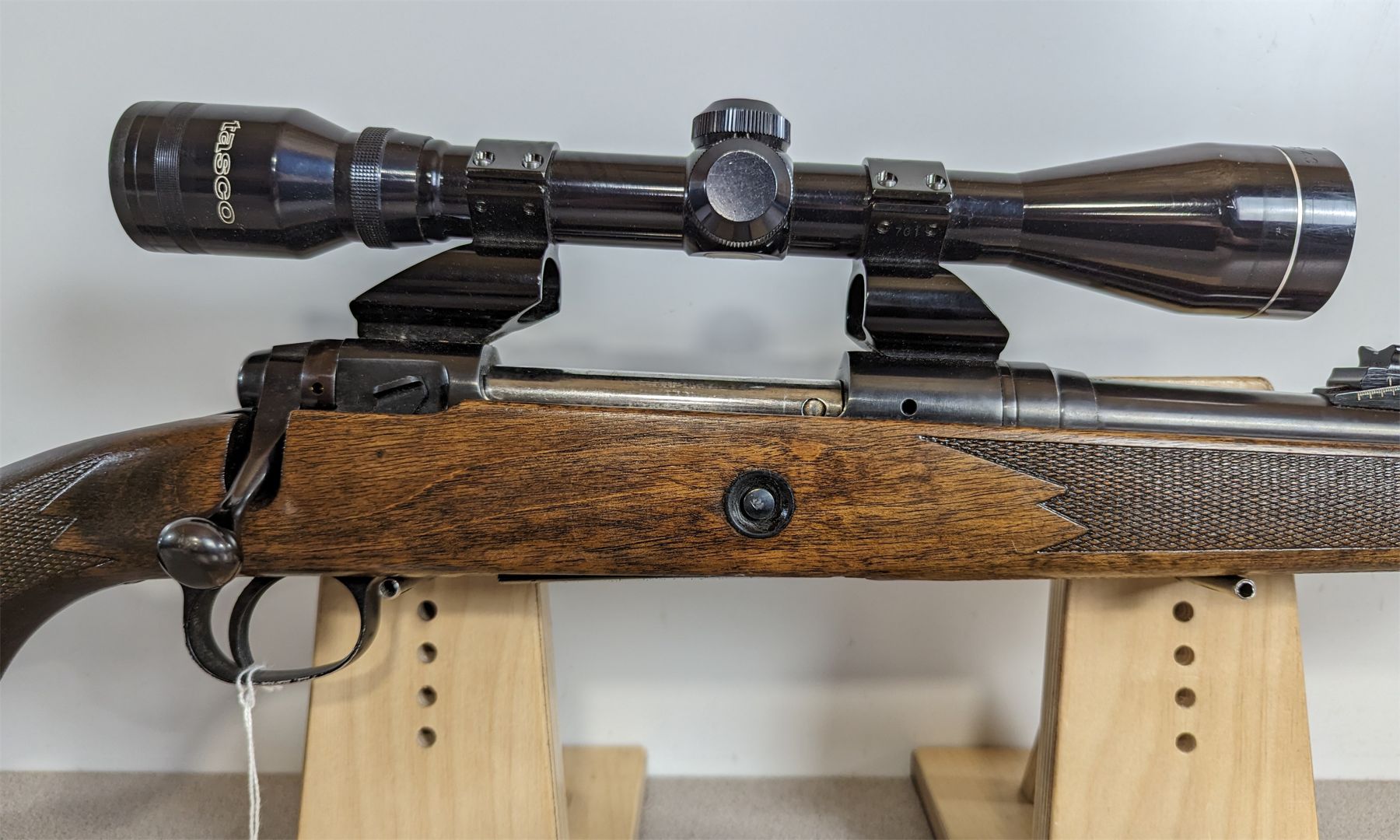 CONDITION: G-VG OVERALL INCL BORE. SPECS: 22 INCH BARREL W/ SIGHTS. EXTRAS: TASCO 4 x 40 SCOPE. CLEAR. S/N: E159476.