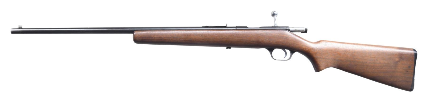 Cal. 22 S, L, LR. NSN. Mfg. post WWII to 1947. Bbl. 24". Bead front sight & rear sight missing elevator. Walnut stock. CONDITION: very good wood & metal finish with marks. Very good bore. (25-2733/MD). CURIO. $100-200.