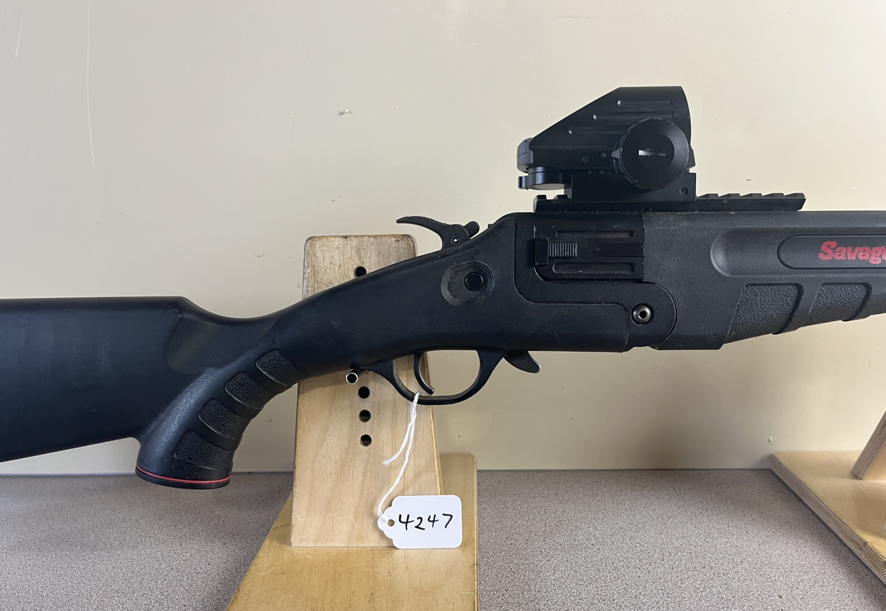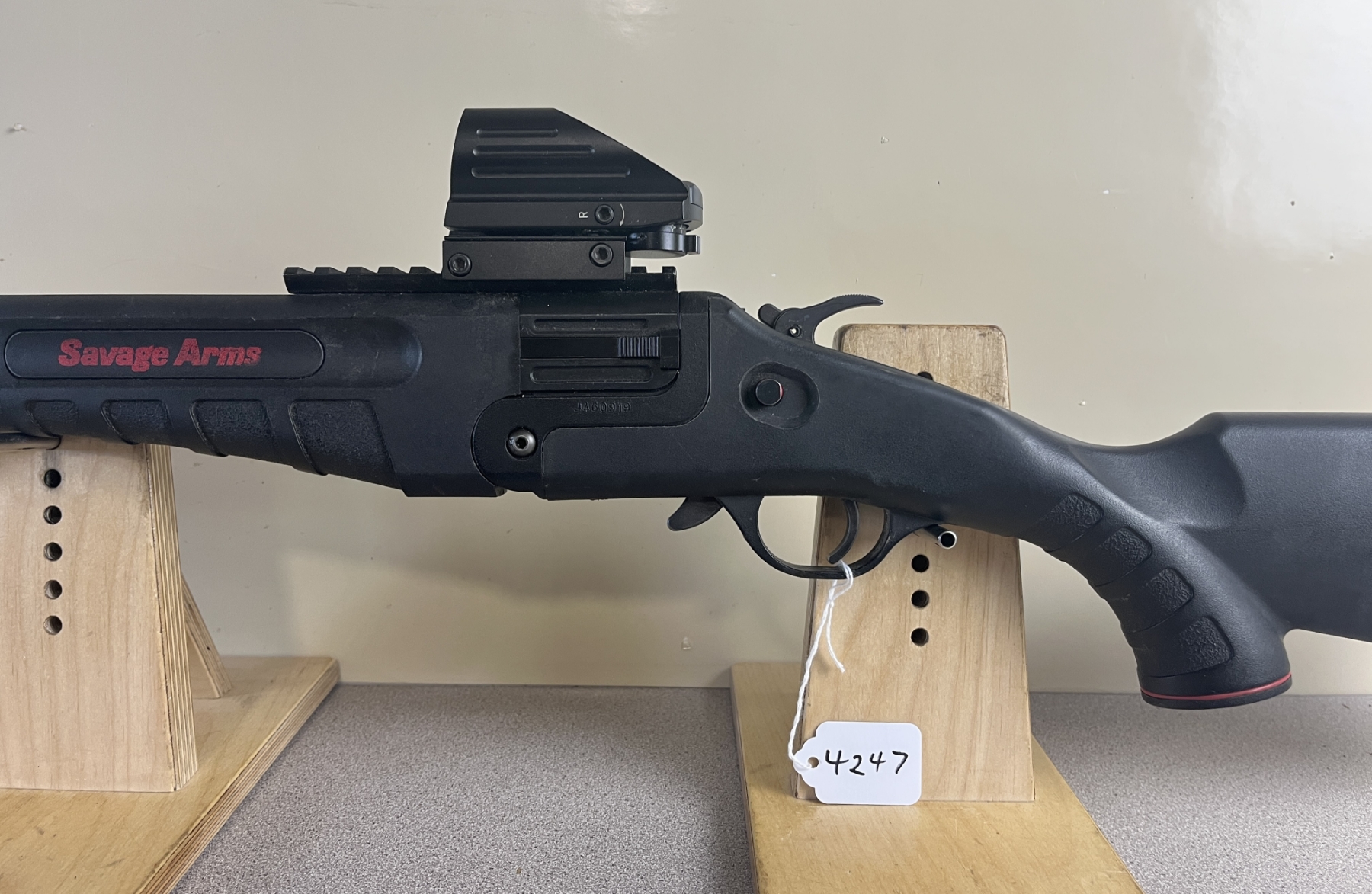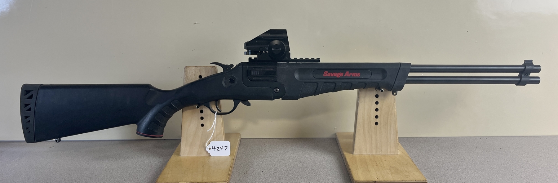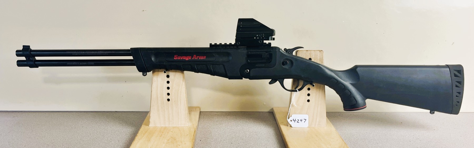 CONDITION: F-G OVERALL INCL BORES. NOTE: SHOWS APPROX 1MM PLAY ON FACE. SPECS: 20IN O/U BBLS. EXTRAS: UNKNOWN RED DOT SIGHT - WORKING WHEN TESTED. S/N: J460919