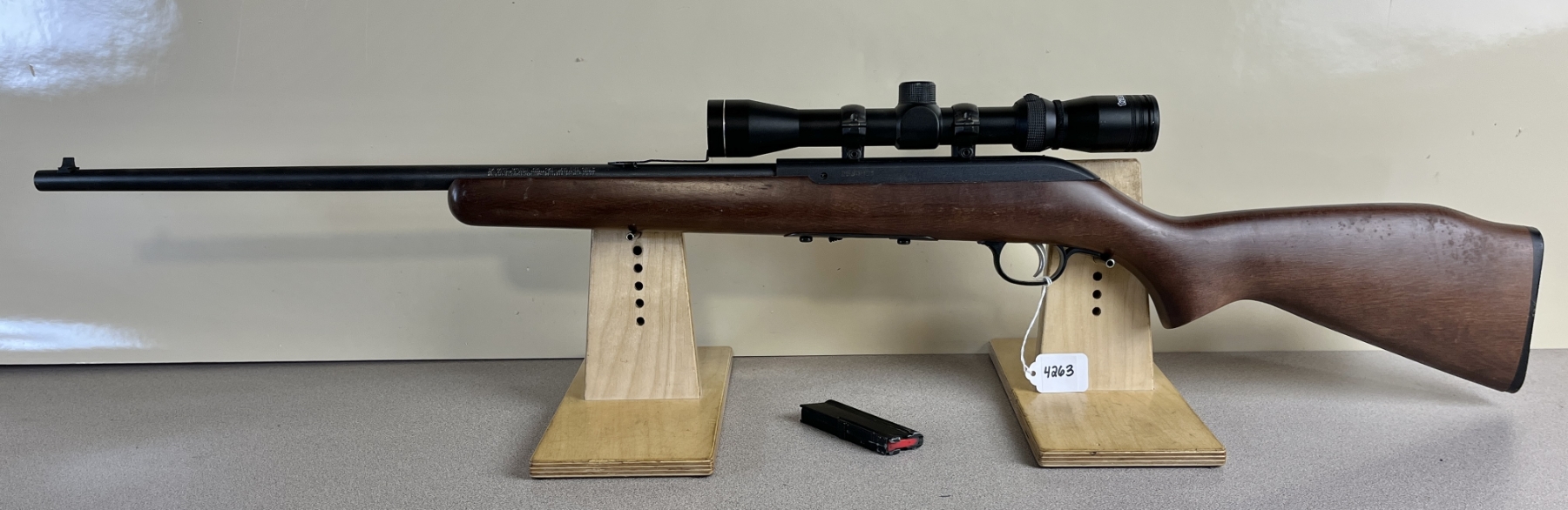 CONDITION: F-G OVERALL G BORE. NOTE MISSING REAR SIGHT ELEVATOR. SPECS: 21IN BBL WITH IRON SIGHTS. INCL 1X MAGAZINE. EXTRAS: TASCO 3-9X SCOPE, CLEAR WITH CROSSHAIRS. S/N: 2536921