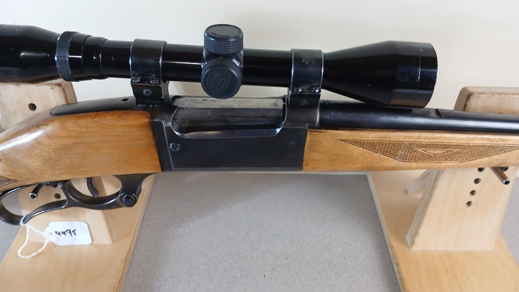 CONDITION: G OVERALL INCL BORE. SPECS: 20IN BBL. EXTRAS: TASCO 4X40 SCOPE CLEAR WITH CROSSHAIRS. S/N: B548593