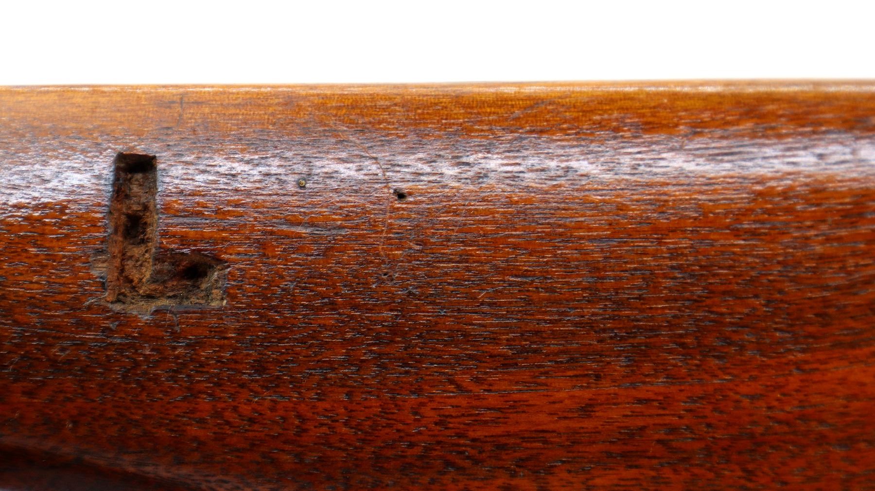 Wear: Metal finish turning brown with pitting, light rust, scratches, handling marks and wear. Stock shows marks, scratches and wear.