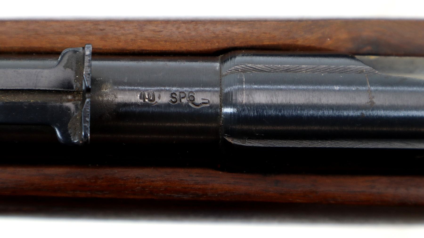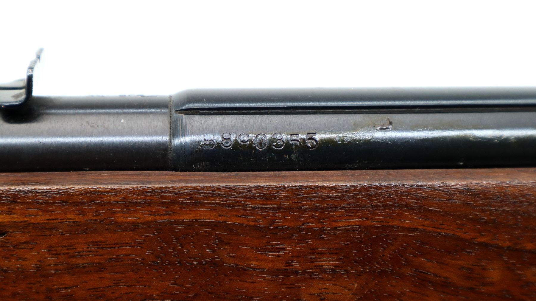 Wear: Metal finish shows some light rust speckles, scratches, handling marks and wear. Stock shows some marks, scratches and wear.