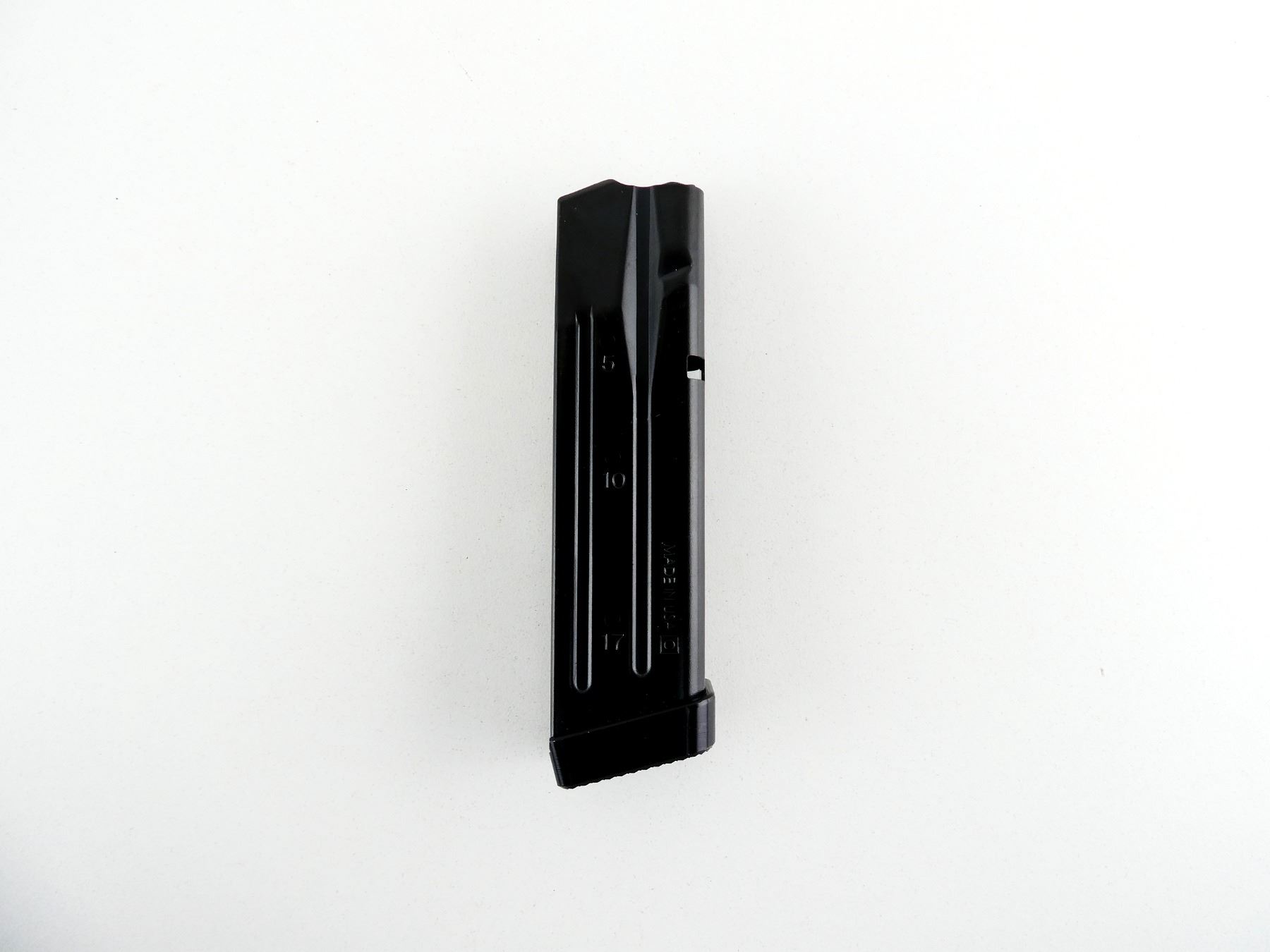 (1) 9MM, 10/17 ROUND PINNED MAG, BLUED STEEL, MARKED: "SIG SAUER", "9MM", "MADE IN ITALY", ETC. SEE PHOTOS. PAL REQUIRED.