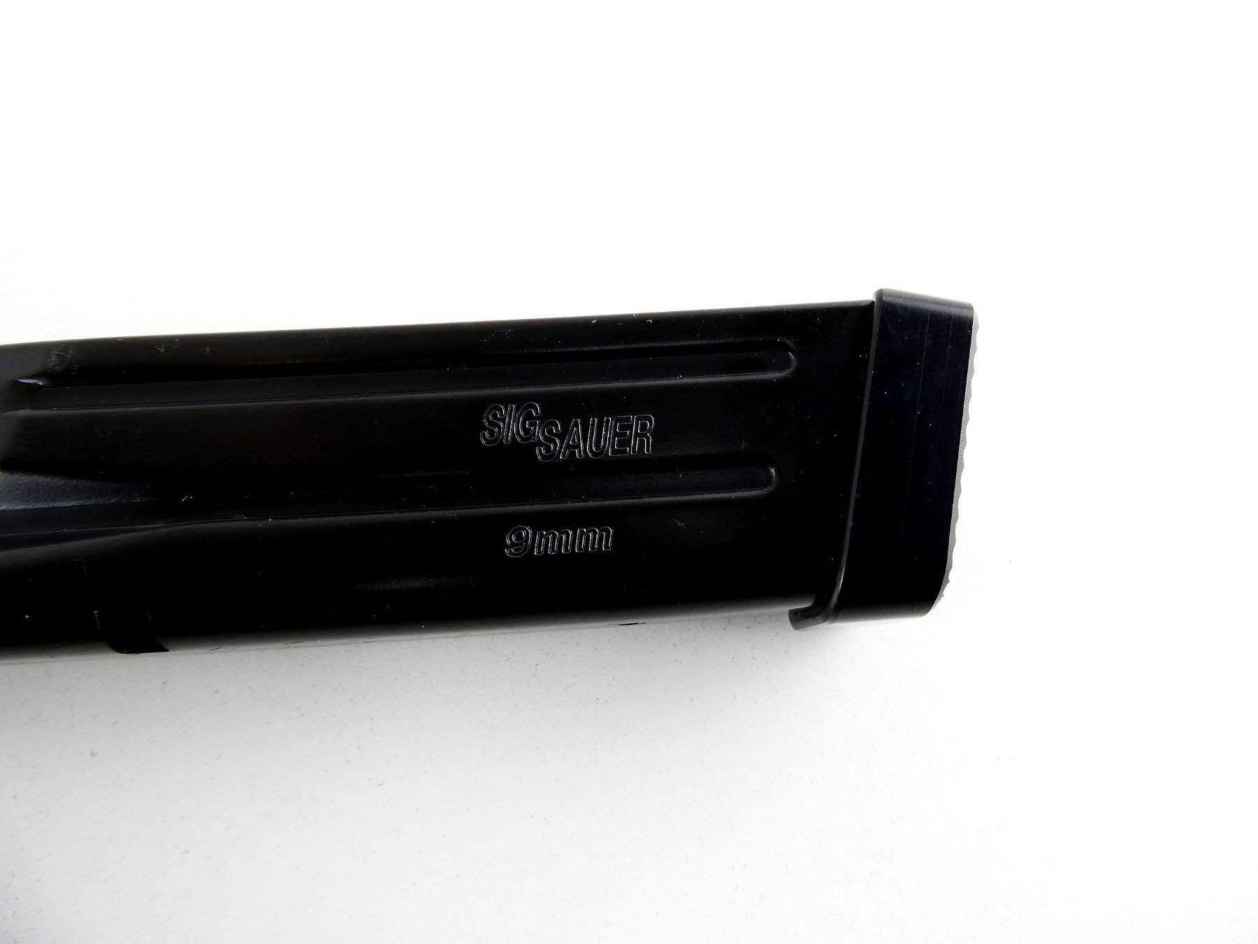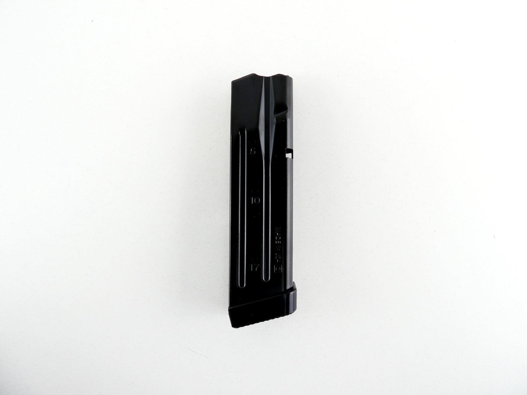 (1) 9MM, 10/17 ROUND PINNED MAG, BLUED STEEL, MARKED: "SIG SAUER", "9MM", "MADE IN ITALY", ETC. SEE PHOTOS. PAL REQUIRED.