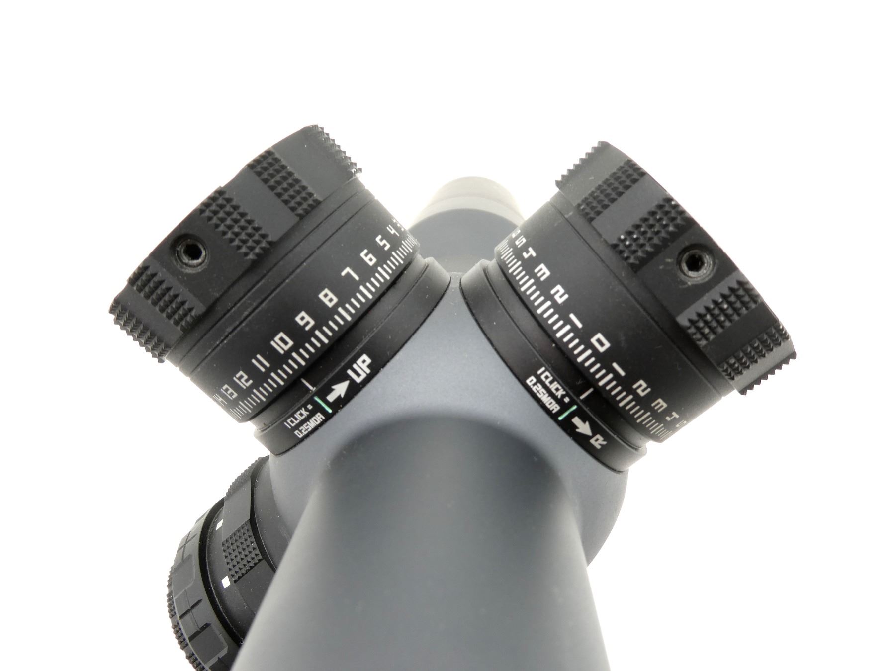 (1) CLEAR OPTICS, DEV-L MRAD FIRST FOCAL PLANE ILLUMINATED (WORKS) RETICLE, 34MM TUBE DIAMETER, LEVELPLEX ANTI-CANT SYSTEM, WORKING MAGNIFICATION RING, WINDAGE & ELEVATION KNOBS TURN, MARKED: "SIG", "TANGO6, 3-18-44", ETC., WITH SUNSHADE & LENS COVERS, SHOWS LIGHT WEAR & TEAR / USE MARKINGS. MAY REQUIRE FITTING. SEE PHOTOS.