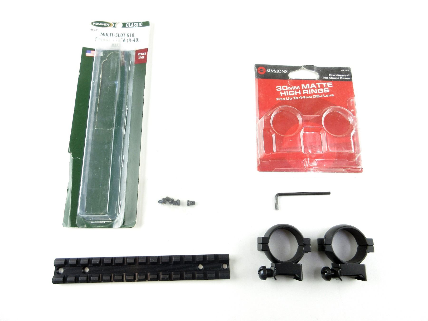 SIMMONS 30MM SCOPE RINGS AND WEAVER SAVAGE 110 SHORT ACTION SCOPE BASE MOUNT LOT