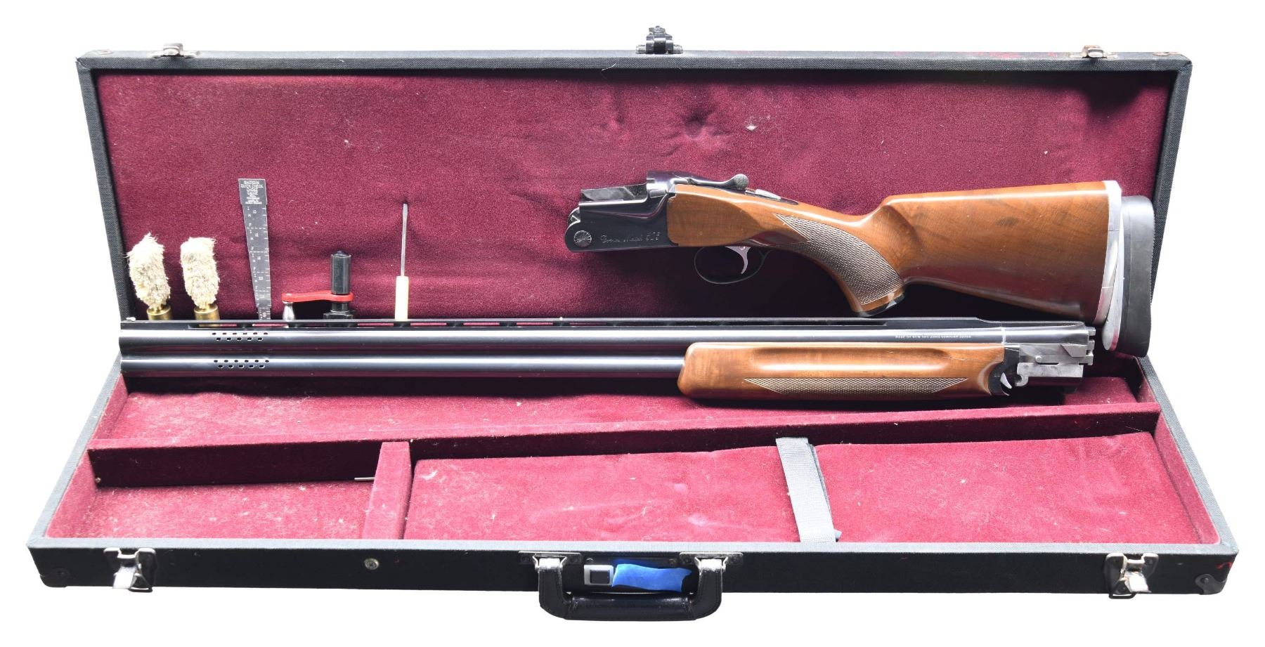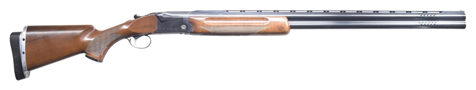 Cal. 12 Ga., 2 3/4". S# NS70835. VR ported 32" bbls. with white target front bead & mid bead. Full & Mod. choke tubes installed. Barrels marked with Sile, NY import mark. Blued receiver with SST & extractors. Checkered walnut stock set with Field style forearm. LOP: 13.25" over Kick-Ezz pad on adjustable shims; buttpad lowered & rotated clockwise. DAC & DAH: 1 1/2". UNATTACHED ACCESSORIES: black case containing accessories including 1 Full & 2 IC choke tubes, 2 choke wrenches & mops. CONDITION: Good to very good blue with scatter handling marks, pinprick oxidation & heavily worn blue on triggerguard bow. Good wood finish with numerous handling marks & line cracking of finish; right side of wrist has crack & gap extending from action. Bright bores with light fouling. (25-2018/MD). MODERN. $500-800.
