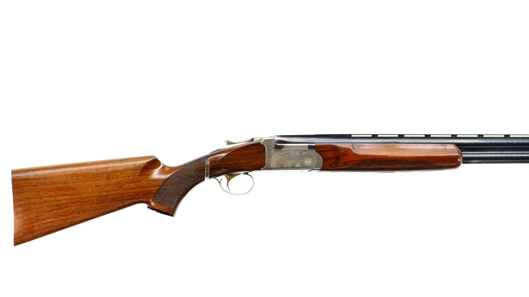 Main Description: White front and silver mid rib beads, blued vent rib barrel, silver engraved receiver, manual safety, action does not function requires parts, adjustment or repair, ejectors, single selective trigger. Two piece wood stocks, checkered forearm and pistol grip, missing butt plate and screws, 14" LOP, grip cap.