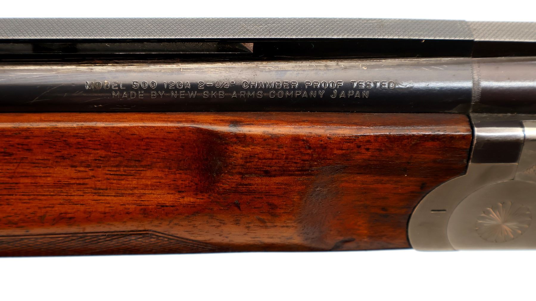 Wear: Metal finish shows a few light rust speckles, scratches, handling marks and wear. Stocks show some marks, scratches and wear.