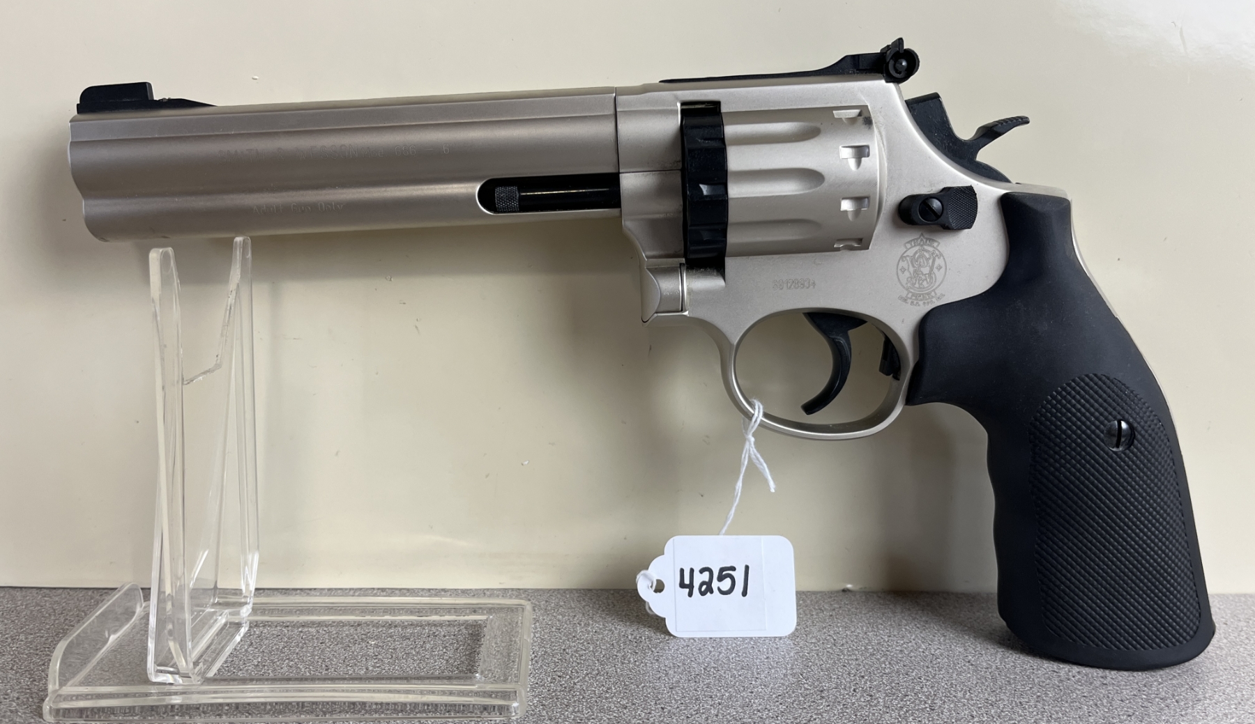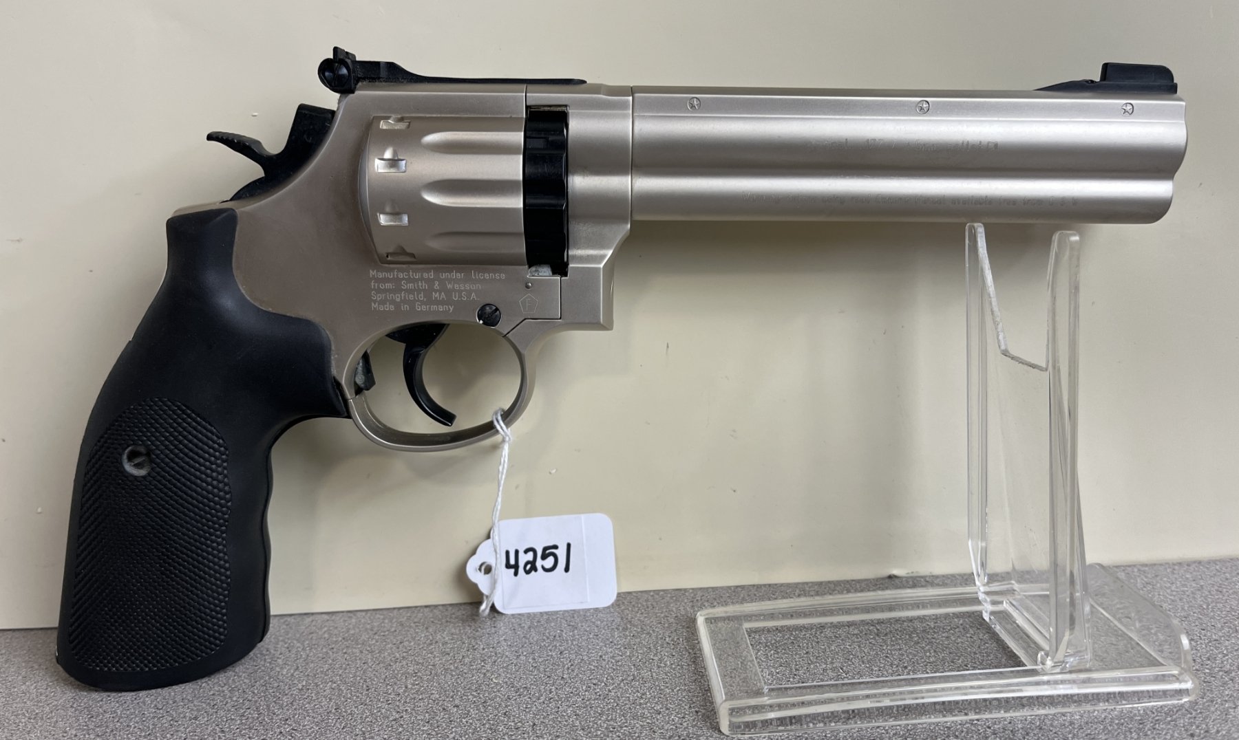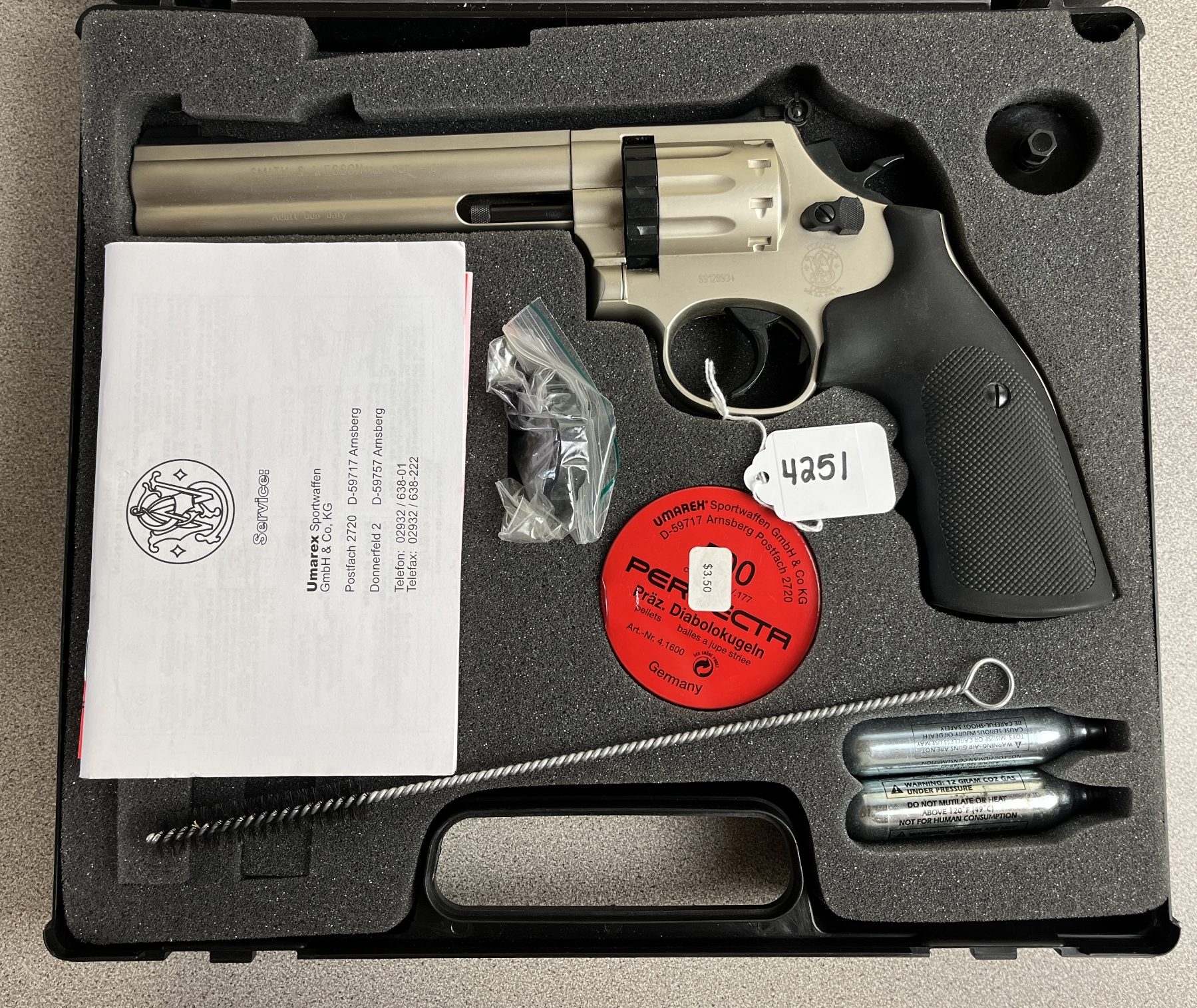 CONDITION: VG OVERALL INCL BORE. SPECS: 6IN STAINLESS BBL WITH IRON SIGHTS. <500FPS. EXTRAS: ORIGINAL CASE AND ACCESSORIES. S/N: S9128934