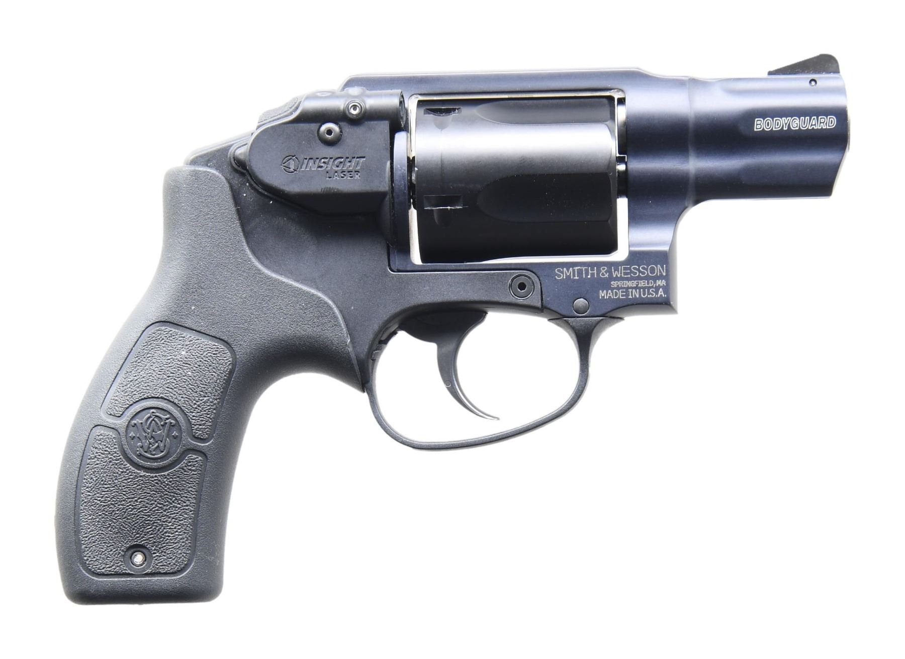 Cal. 38 Spl. +P. S# CRK5132. Bbl. 1 7/8". Ramped serrated blade front sight. Fixed rear sight. Insight laser present that does not appear to turn on. 5-shot cyl. Matte black finish. Black rubber grips with S&W monograms. UNATTACHED ACCESSORIES: matching numbered factory box with black softcase, manual, paperwork & trigger lock. CONDITION: grips & metal show some light handling marks. Action functions properly when hand cycled. Bright near excellent bore. (25-3384/MJC). MODERN. $300-450.