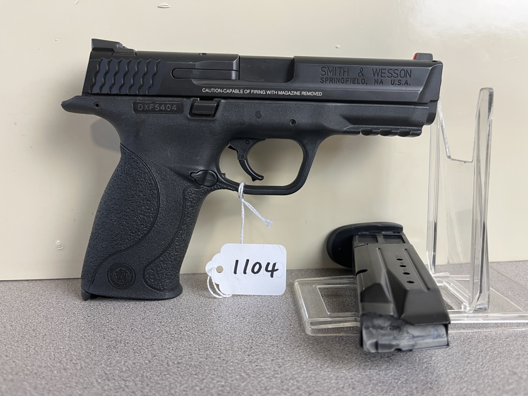 CONDITION: VG OVERALL, BORE G. SPECS: 109MM BBL. INCL 1X MAG. EXTRAS: NONE. S/N: DXF5404
