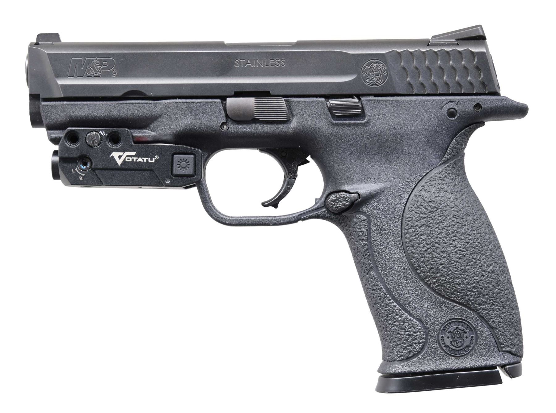 Cal. 9x19. S# MPP9642. Bbl. 4 1/4". Three-dot sights. Matte black finish. Polymer frame with accessory rail and Votatu green laser. MAGS: one 10-rd. CONDITION: all aspects are near-excellent. (24-6341/MJC). MODERN. $300-450.