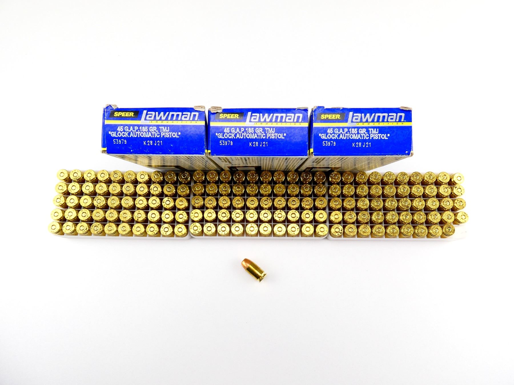 LOT INCLUDES; APPROX. (150) RNDS, 185 GRNS (STATED ON BOXES NOT CONFIRMED), TMJ, FOR "GLOCK AUTOMATIC PISTOL".