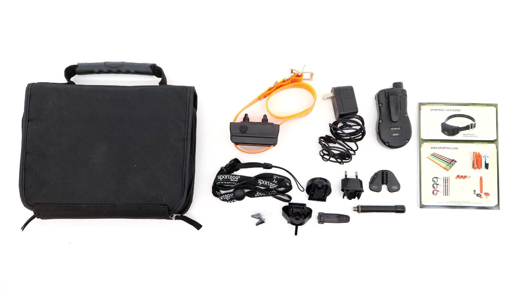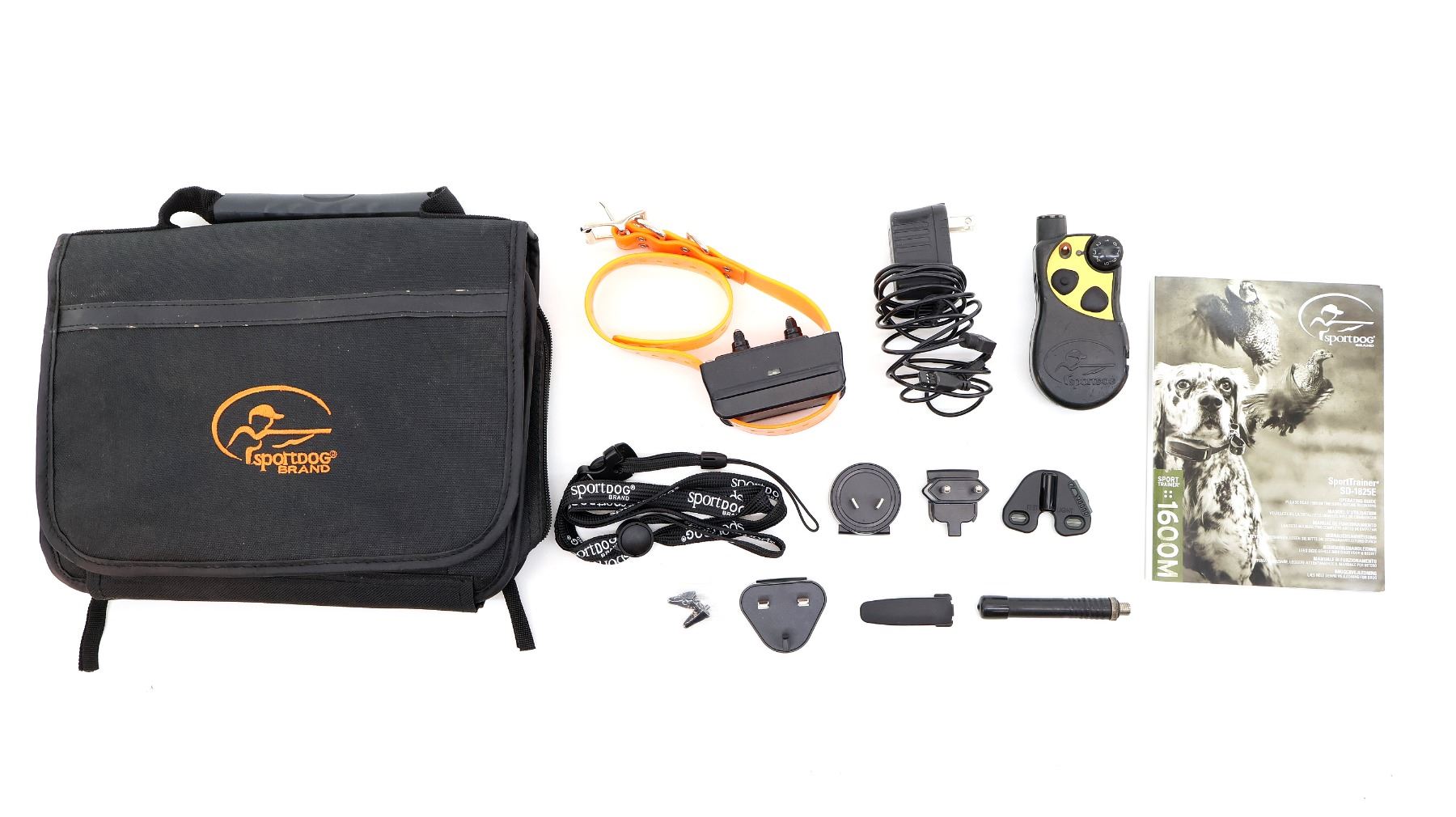 (1) MODEL: SD-1825E, FOR DOGS OVER 8LB (3.5KG), RANGE OF 1,600M (1 MILE), INCLUDES; REMOTE TRANSMITTER, COLLAR RECEIVER, ADAPTORS, ETC., UNTESTED, WITH INSTRUCTIONS IN ORIGINAL CARRY CASE. SEE PHOTOS.