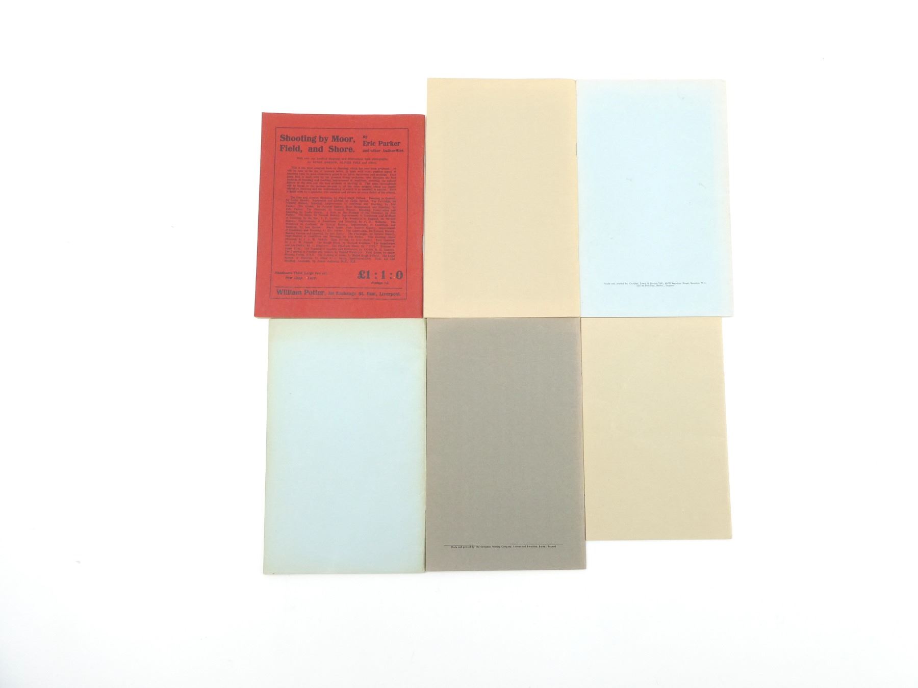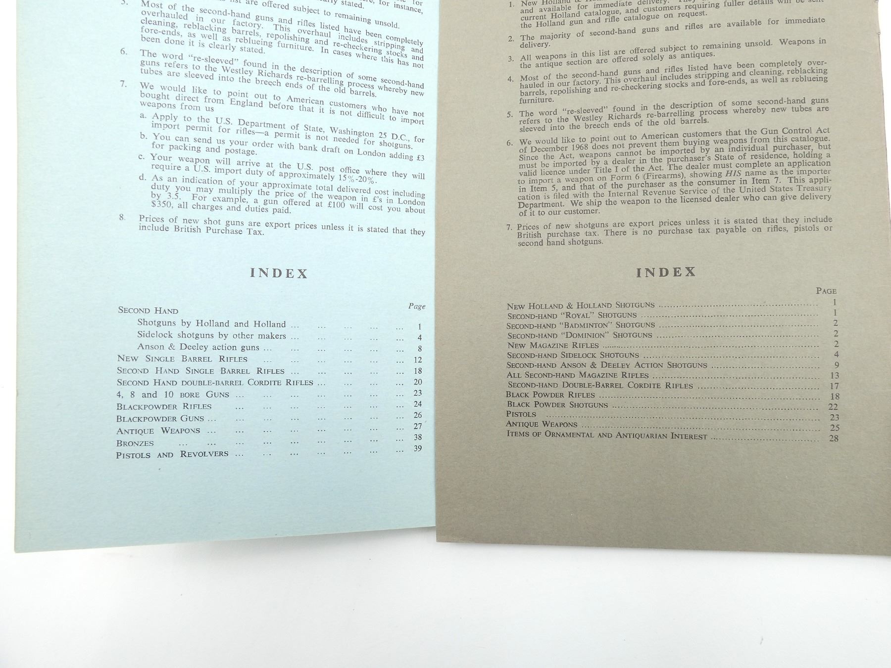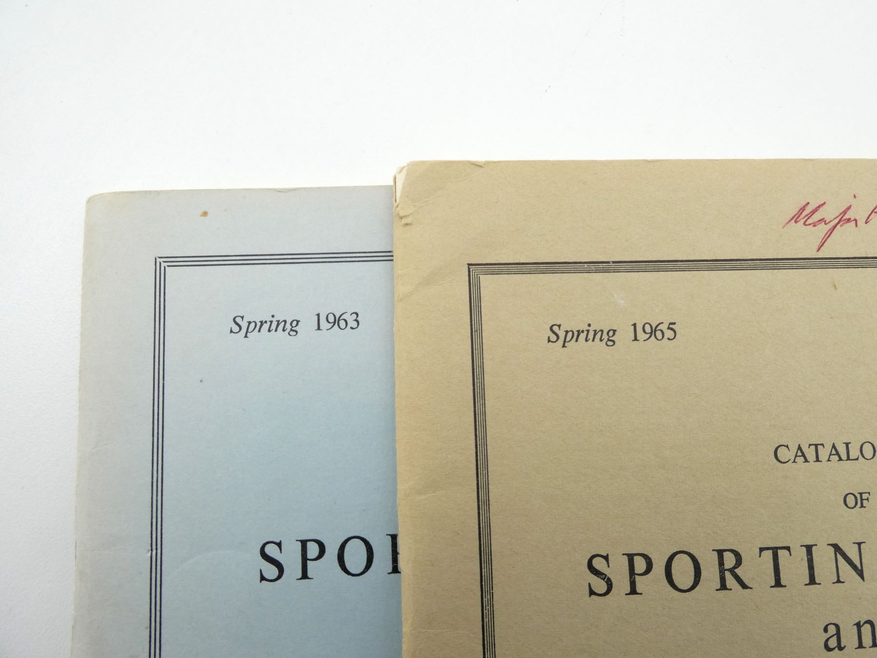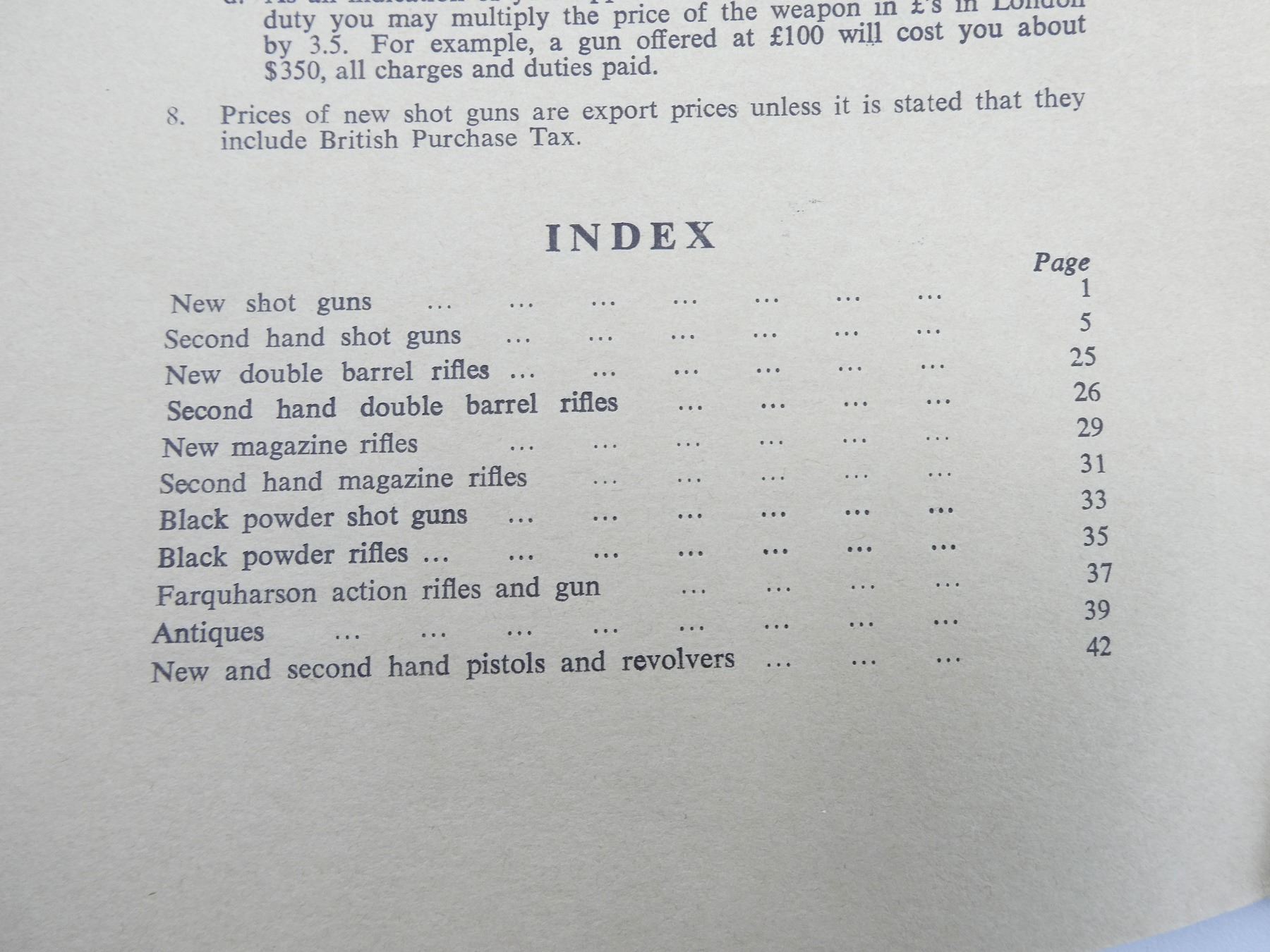 LOT INCLUDES; (1) "SPORTING BOOKS OLD AND NEW", BY WILLIAM POTTER, SOFT COVER, DATED 1930, (1) "CATALOGUE OF SPORTING GUNS AND RIFLES ALSO ANTIQUE FIREARMS AND PISTOLS", BY HOLLAND & HOLLAND LTD., SOFT COVER, DATED SPRING 1963, (1) "CATALOGUE OF SPORTING GUNS AND RIFLES ALSO ANTIQUE FIREARMS AND PISTOLS", BY HOLLAND & HOLLAND LTD., SOFT COVER, DATED SPRING 1965, (1) "CATALOGUE OF NEW AND SECOND HAND SPORTING GUNS AND RIFLES ALSO ANTIQUE FIREARMS, SWORDS, SPORTING BRONZES, AND MODERN PISTOLS AND REVOLVERS", BY HOLLAND & HOLLAND LTD., SOFT COVER, DATED SPRING 1967, (1) "CATALOGUE OF NEW AND SECOND HAND SPORTING GUNS AND RIFLES ALSO ANTIQUE FIREARMS, SWORDS, SPORTING BRONZES, AND MODERN PISTOLS AND REVOLVERS", BY HOLLAND & HOLLAND LTD., SOFT COVER, DATED SPRING 1968 & (1) "CATALOGUE OF NEW AND SECOND HAND SPORTING GUNS AND RIFLES ALSO ANTIQUE FIREARMS, SWORDS, SPORTING BRONZES, AND MODERN PISTOLS AND REVOLVERS", BY HOLLAND & HOLLAND LTD., SOFT COVER, DATED SPRING 1969. SEE PHOTOS.