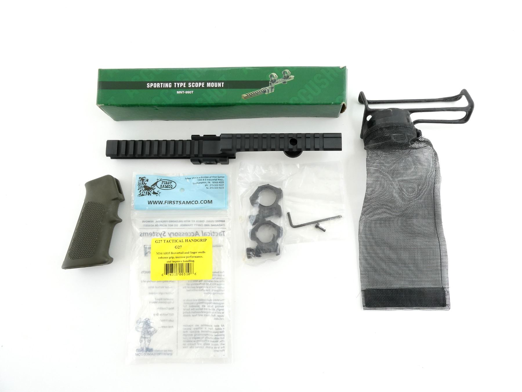 SPORTING-TYPE SCOPE MOUNT AND FIRST SAMCO G27 TACTICAL HANDGRIP LOT