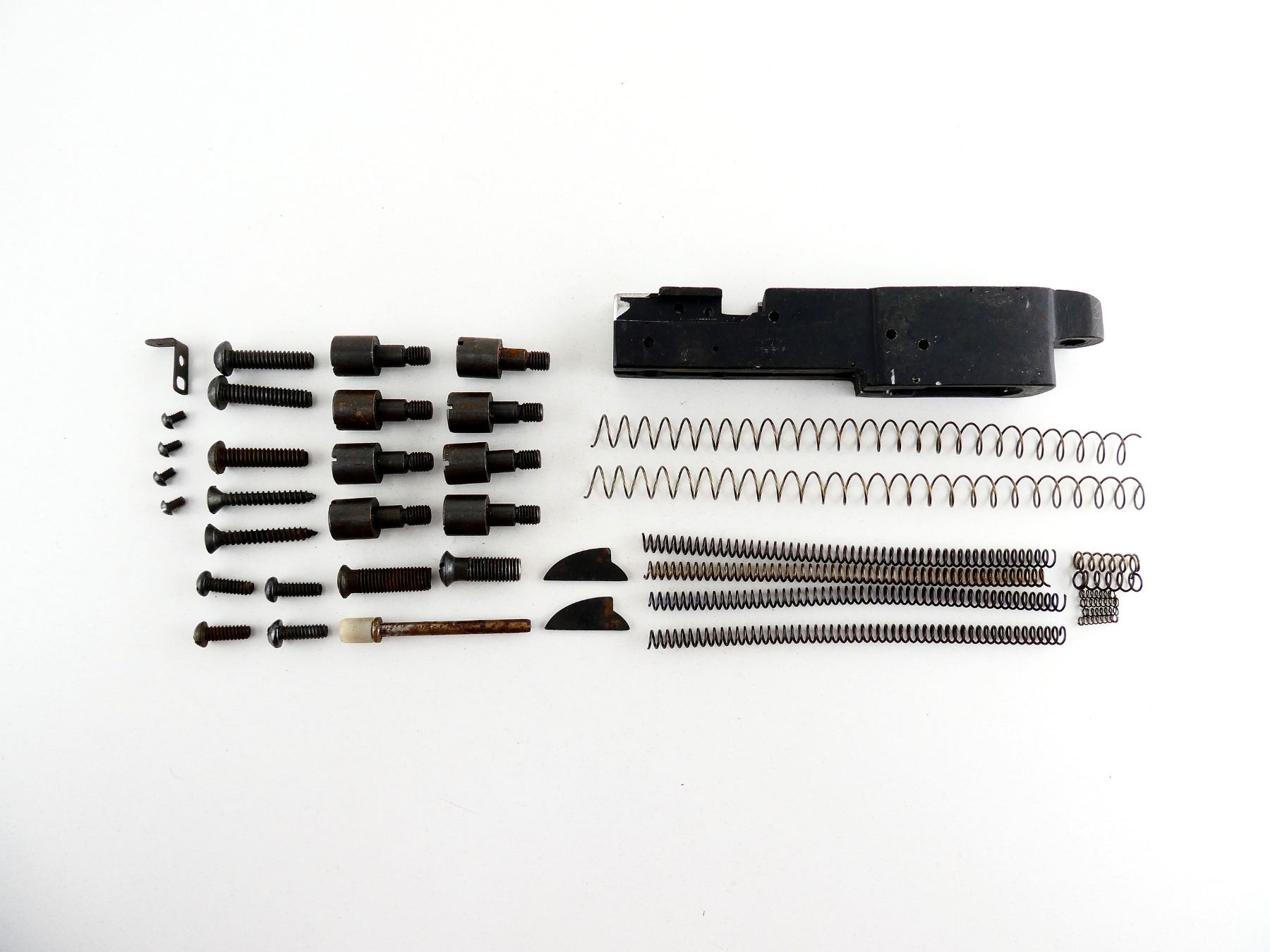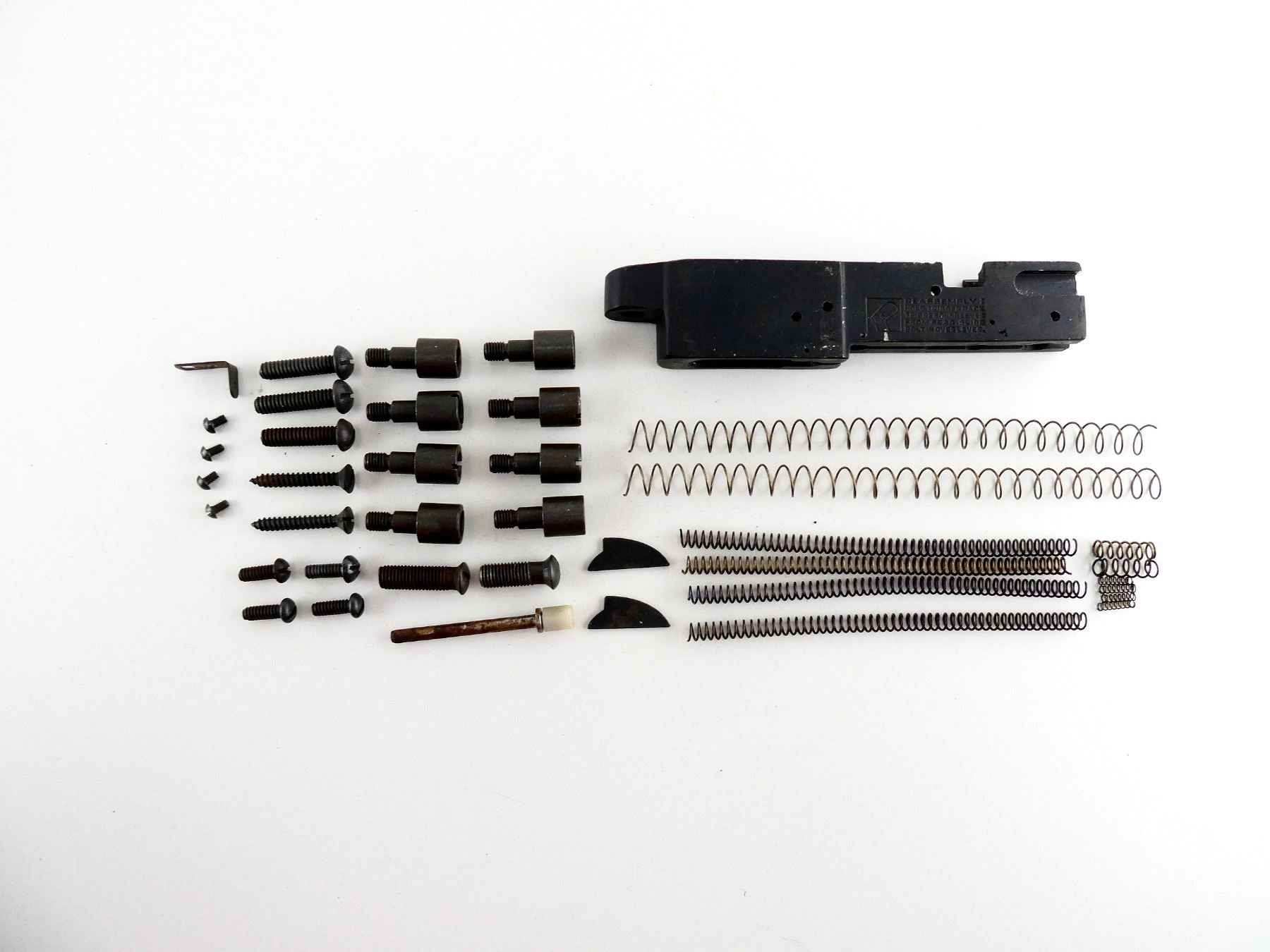 LOT INCLUDES; TRIGGER FRAME, FIRING PIN SPRINGS, RETURN SPRINGS, BUTT PLATE SCREWS, VARIOUS SCREWS / SPRINGS, ETC. MAY REQUIRE FITTING. SEE PHOTOS.