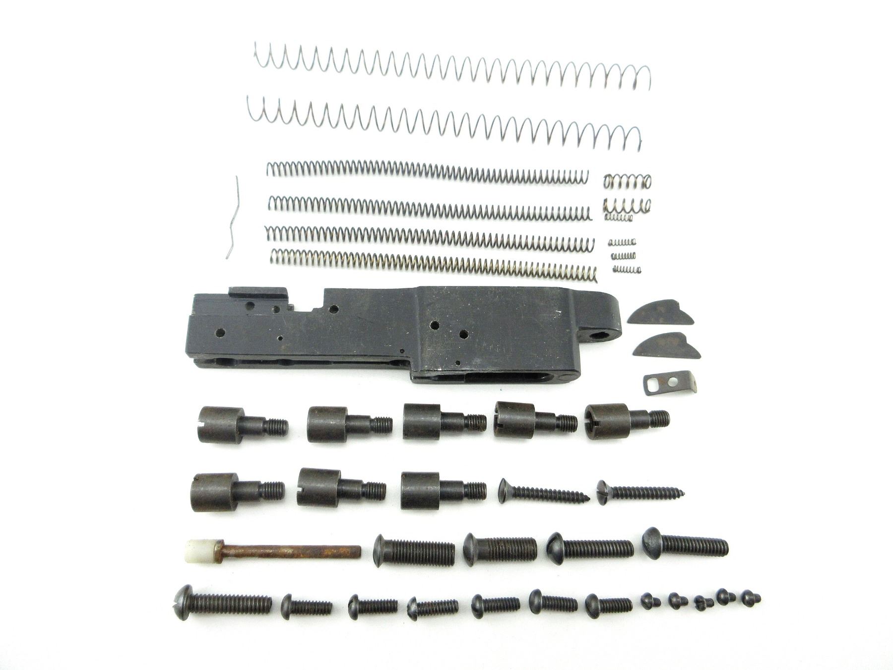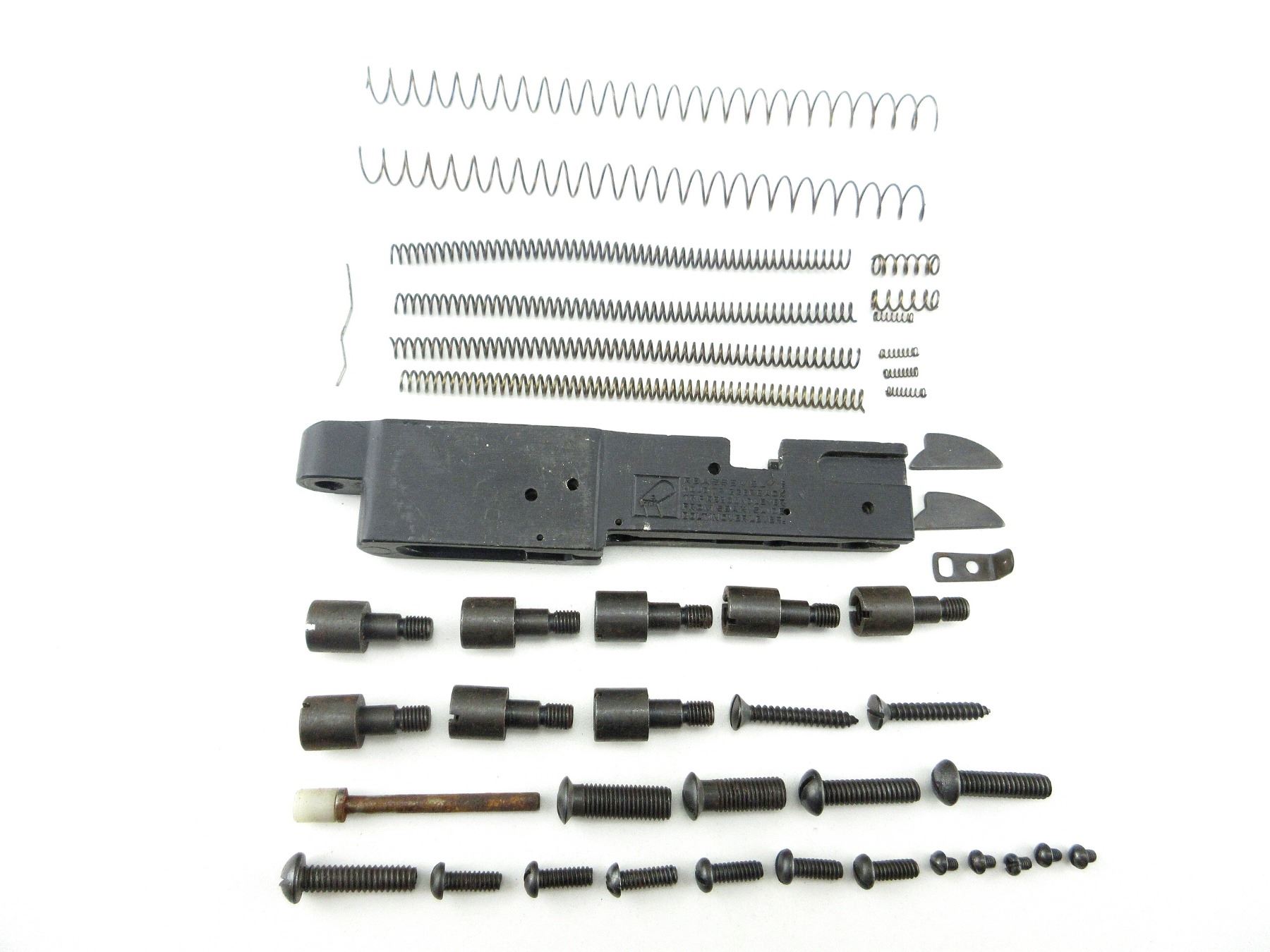 LOT INCLUDES; TRIGGER FRAME, FIRING PIN SPRINGS, RETURN SPRINGS, BUTT PLATE SCREWS, VARIOUS SCREWS / SPRINGS, ETC. MAY REQUIRE FITTING. SEE PHOTOS.