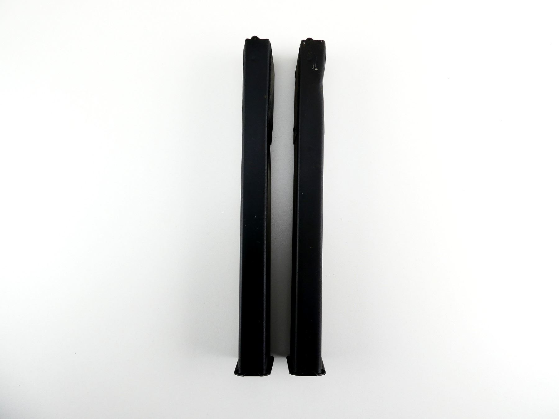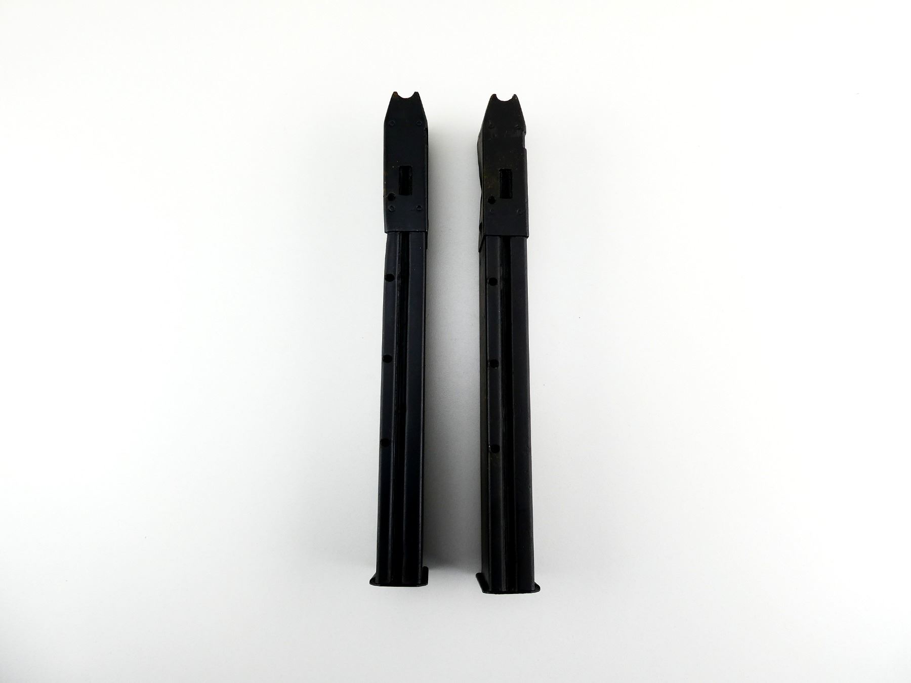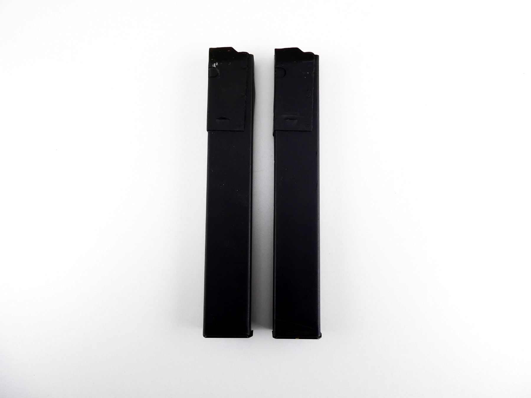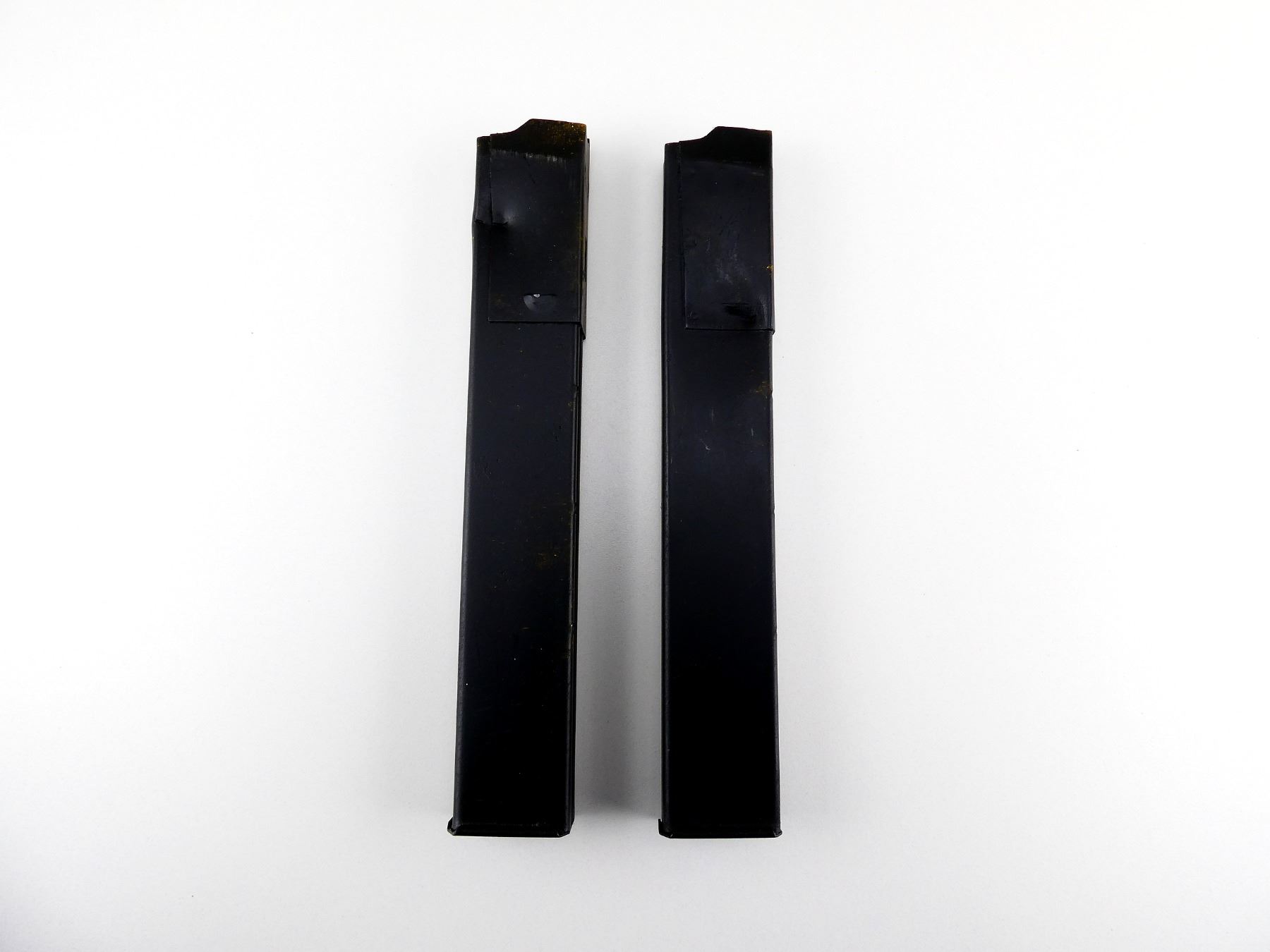 LOT INCLUDES; (2) 9MM, 0/32 ROUND PINNED MAG (DEACTIVATED), BLACK PAINTED STEEL, MARKED: "KC" & C-BROAD ARROW. SEE PHOTOS. PAL REQUIRED.