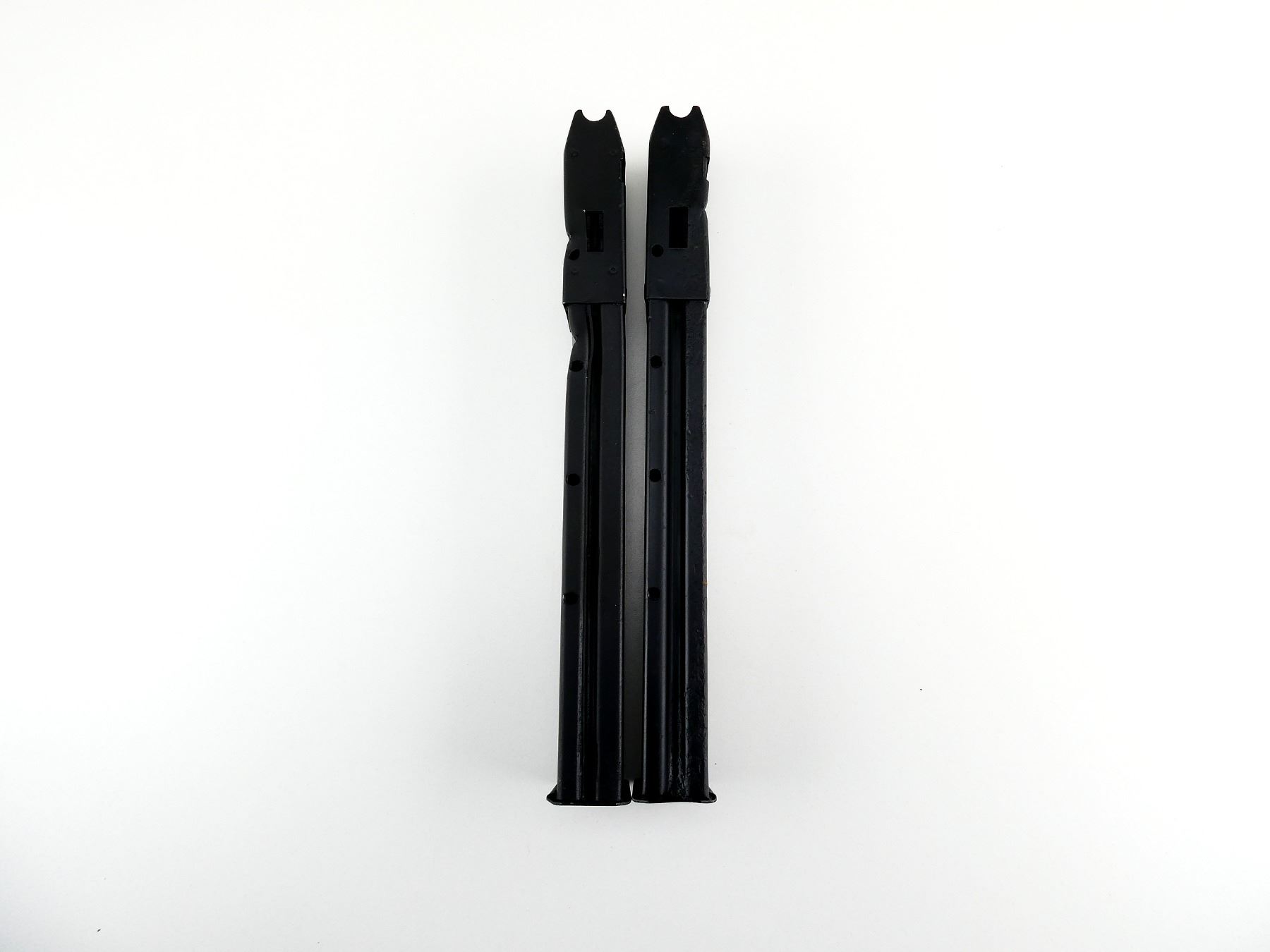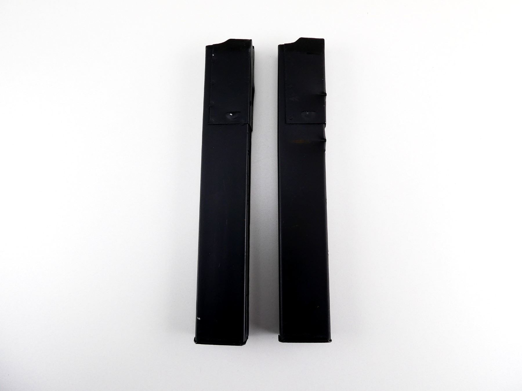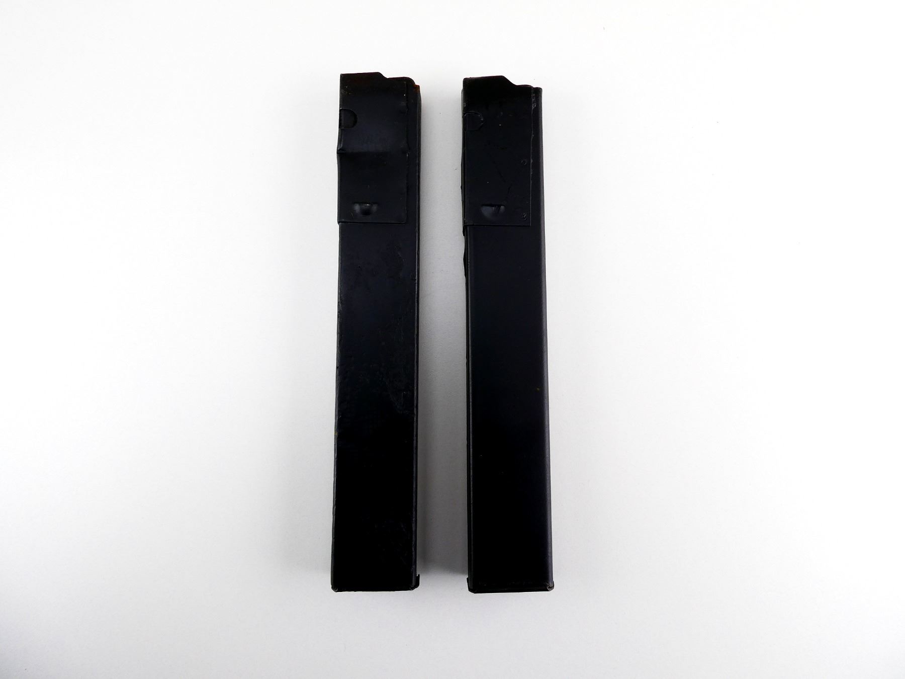 LOT INCLUDES; (2) 9MM, 0/32 ROUND PINNED MAG (DEACTIVATED), BLACK PAINTED STEEL, MARKED: "C KC" & C-BROAD ARROW. SEE PHOTOS. PAL REQUIRED.