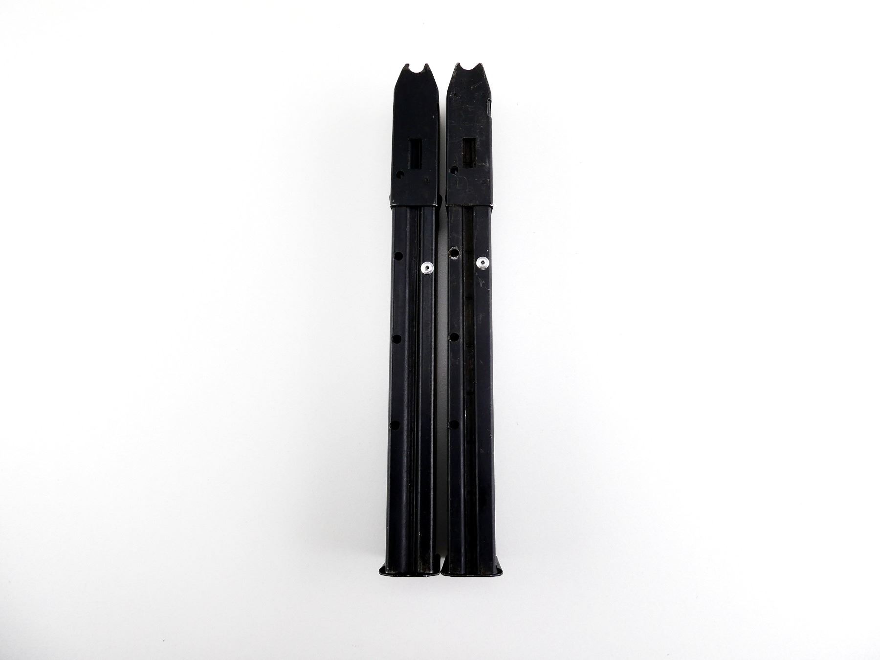 LOT INCLUDES; (2) 9MM, 5/32 ROUND PINNED MAG, BLUED STEEL CONSTRUCTION, ONE MARKED: "BG" WITH FAINT PROOF MARK. SEE PHOTOS. PAL REQUIRED.