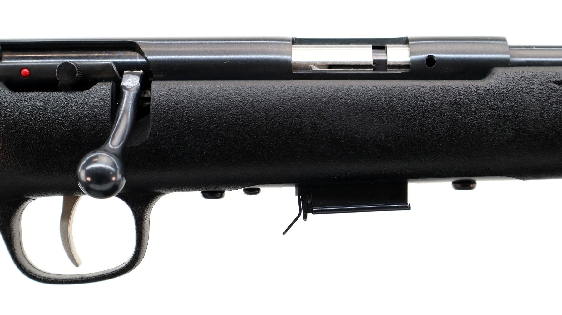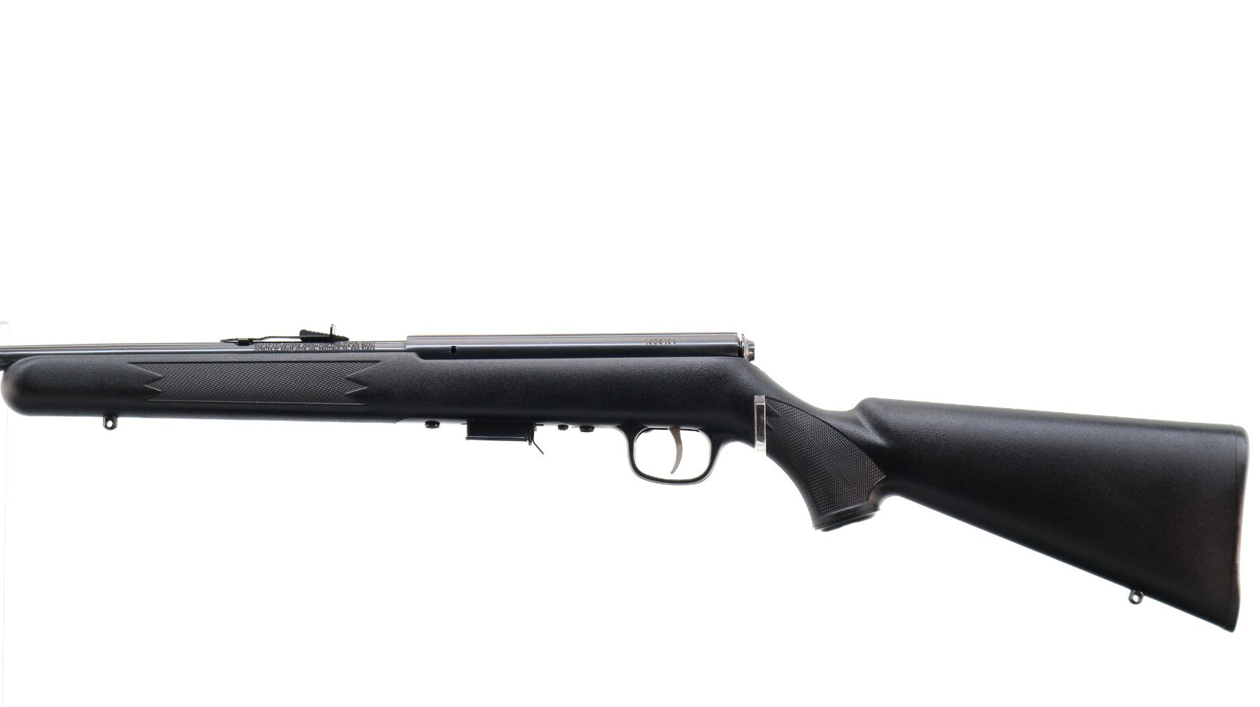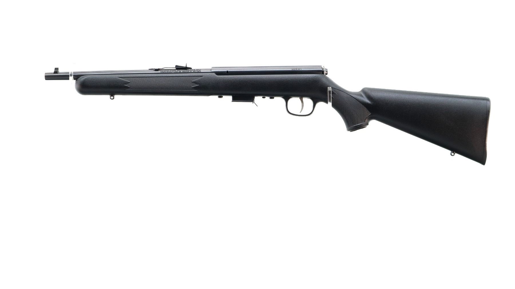 Main Description: Blade front sight, adjustable u notched rear sight, blued finish, receiver drilled and tapped with no plug screws installed. One piece black synthetic stock, checkered forearm and pistol grip, grooved black polymer butt plate, grip cap, swivel studs.