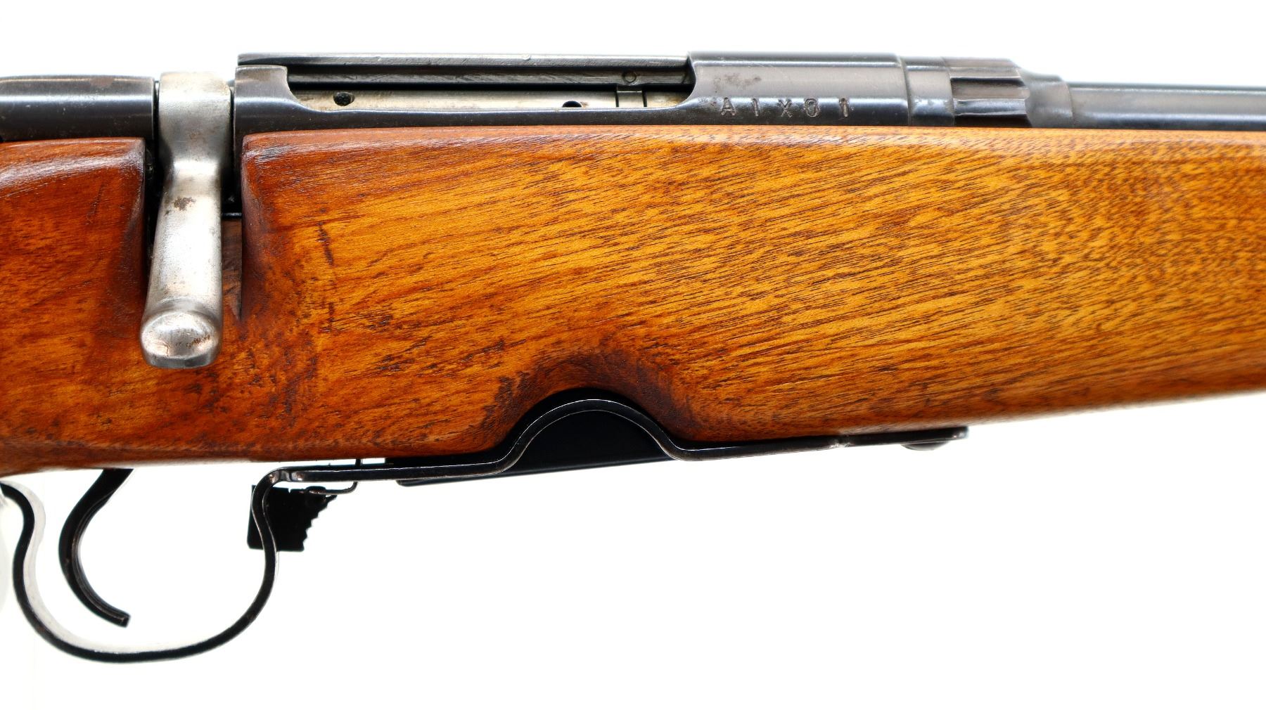 Wear: Metal finish shows a few light rust spots, scratches, handling marks and wear. Stock shows marks, scratches and wear.