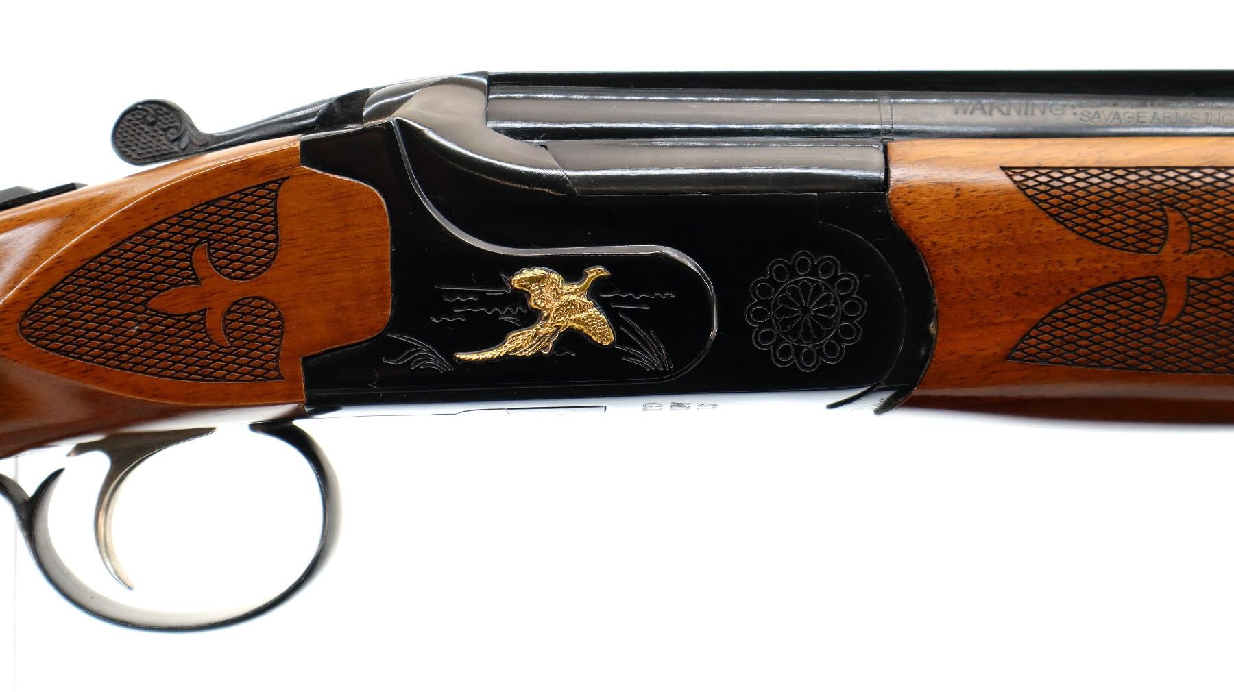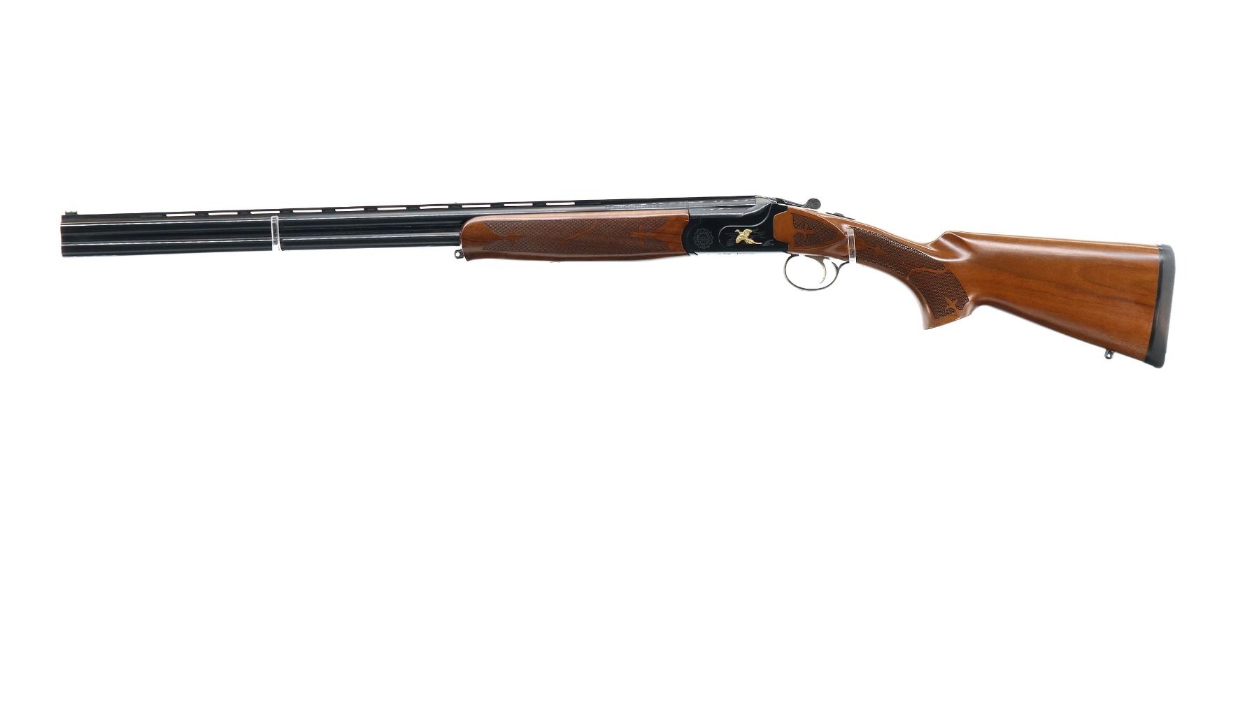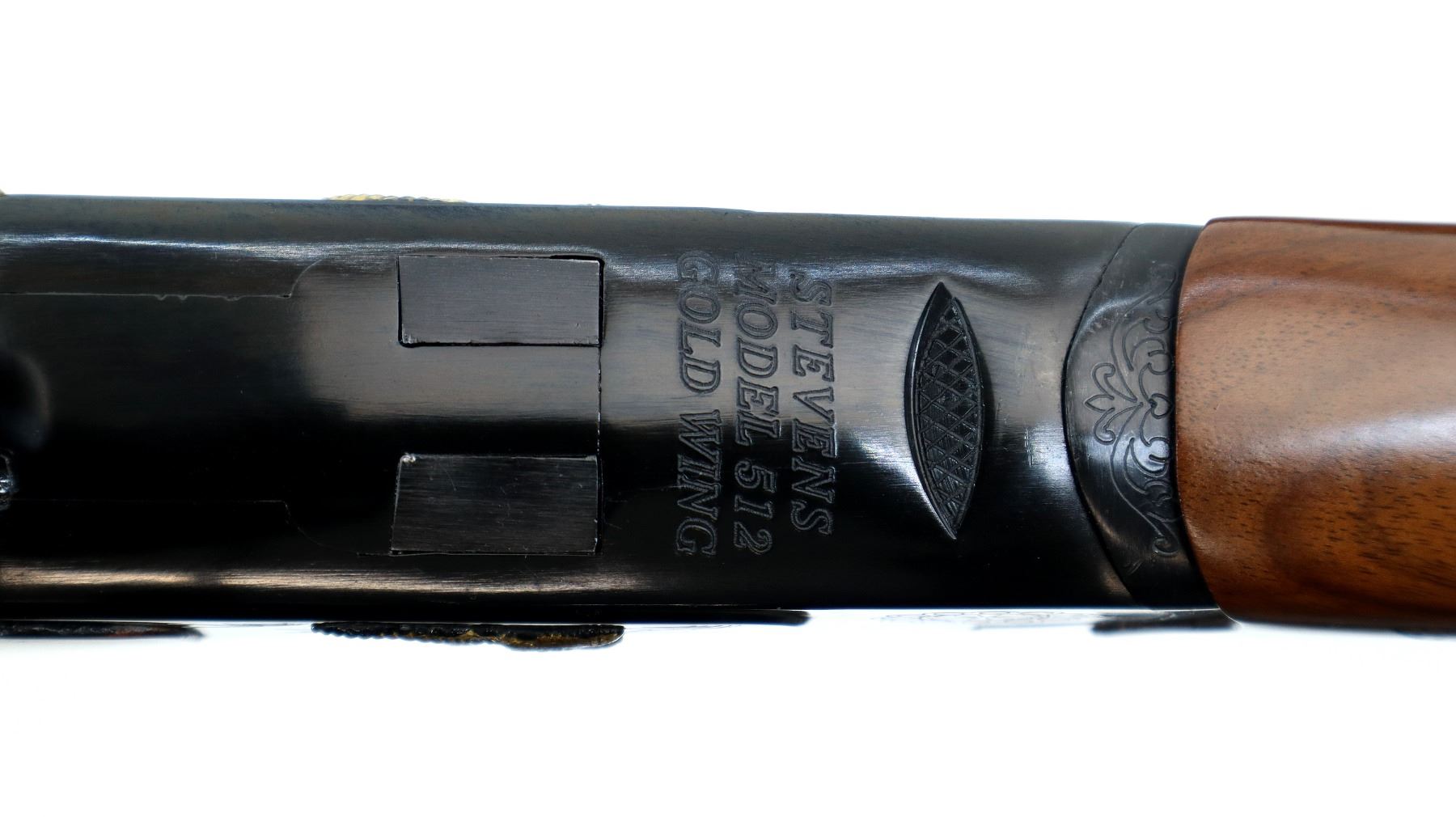 Main Description: Green fiber optic front and brass mid rib beads, blued vent rib barrels, black alloy engraved receiver with gold Birds, manual selective safety, extractor, single silver mechanical trigger. Two piece wood stocks, checkered forearm and pistol grip, black rubber recoil pad, swivel studs.