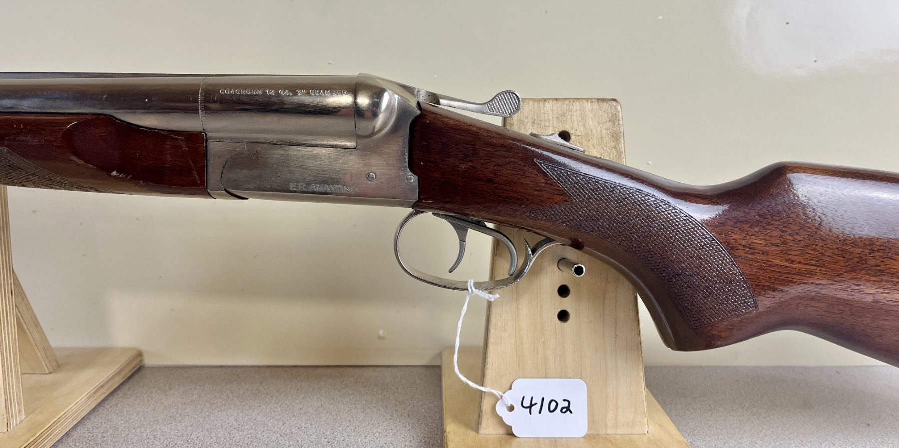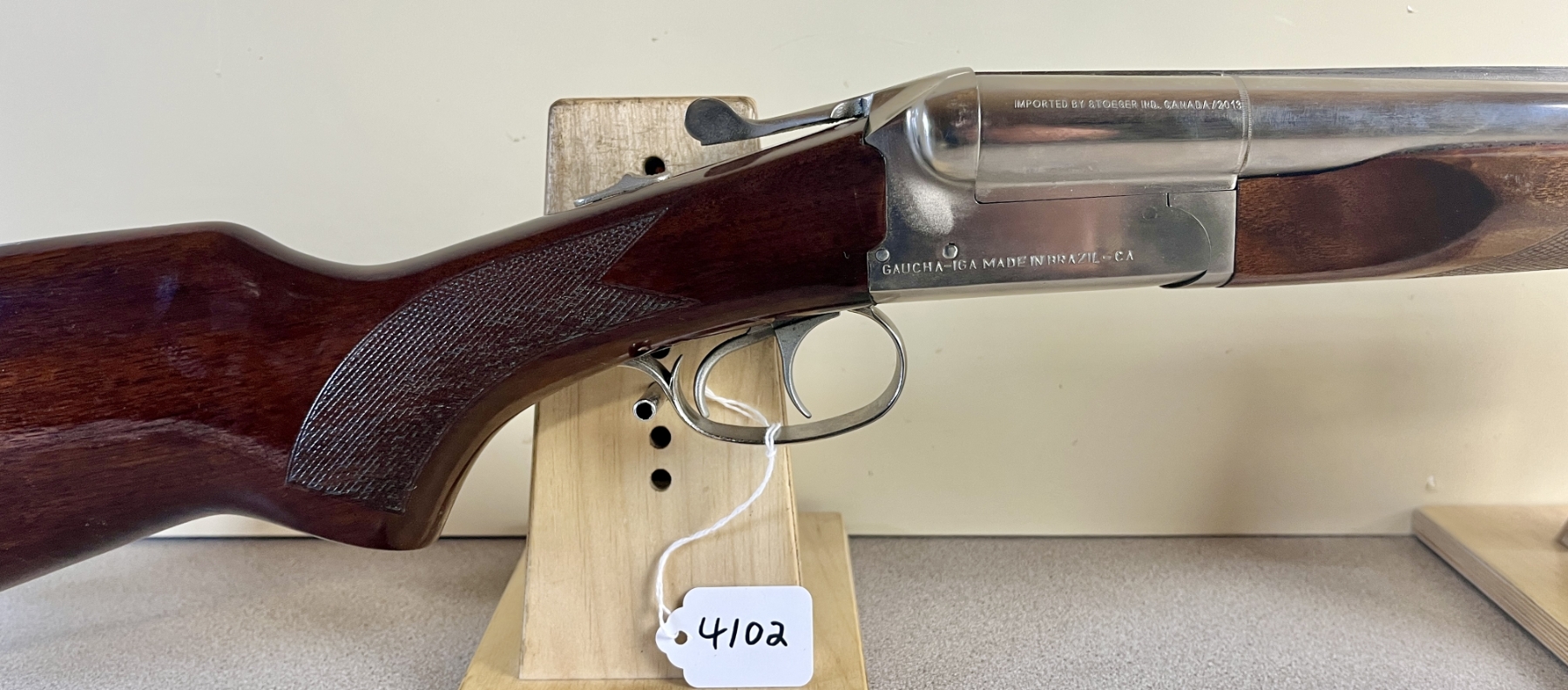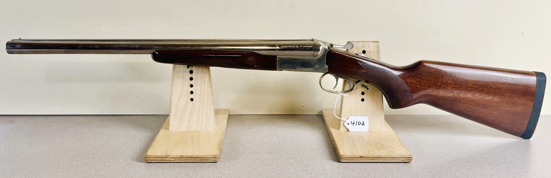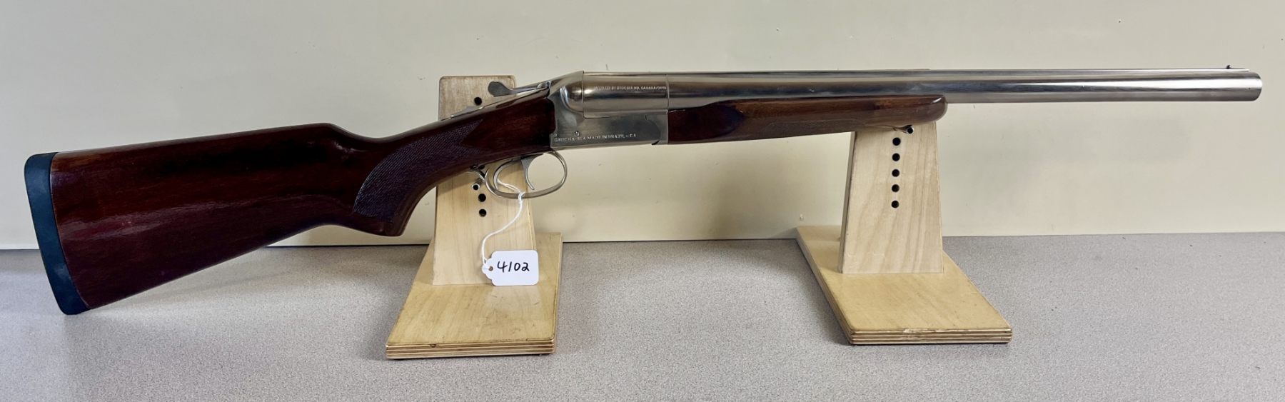 CONDITION: G OVERALL INCL BORES. NOTE: SHOWS SMALL CHIP AT GRIP HEEL, SEE PICS. SPECS: 20IN STAINLESS SXS BBLS WITH REMOVABLE CHOKES. EXTRAS: NONE. S/N: C698643-13