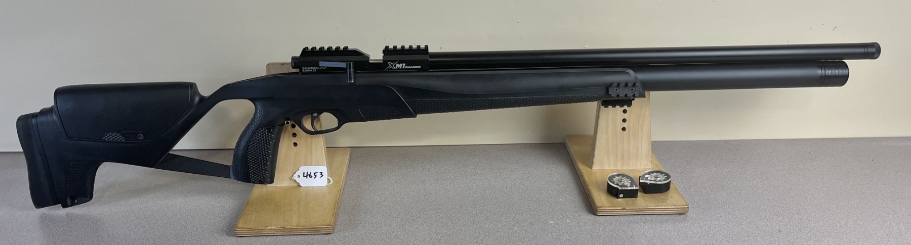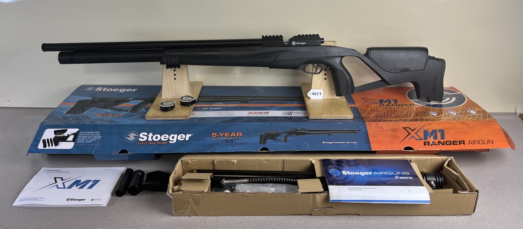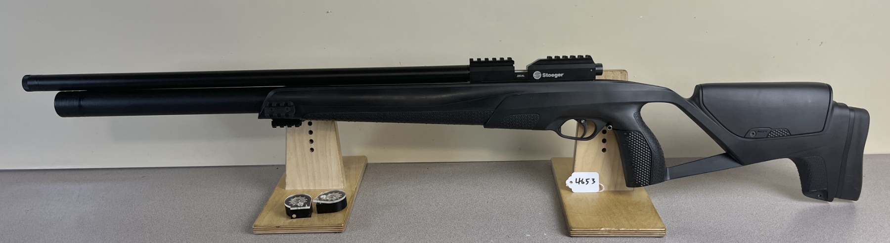 CONDITION: APPEARS VG OVERALL. UNTESTED. SPECS: 25-1/4IN BBL. INCL 2X MAGS. EXTRAS: ORIGINAL BOX, MANUAL, SOME ACCESSORIES INCL O RINGS, STOEGER HAND PUMP IN BOX WITH ACCESSORIES. S/N: SAG240663