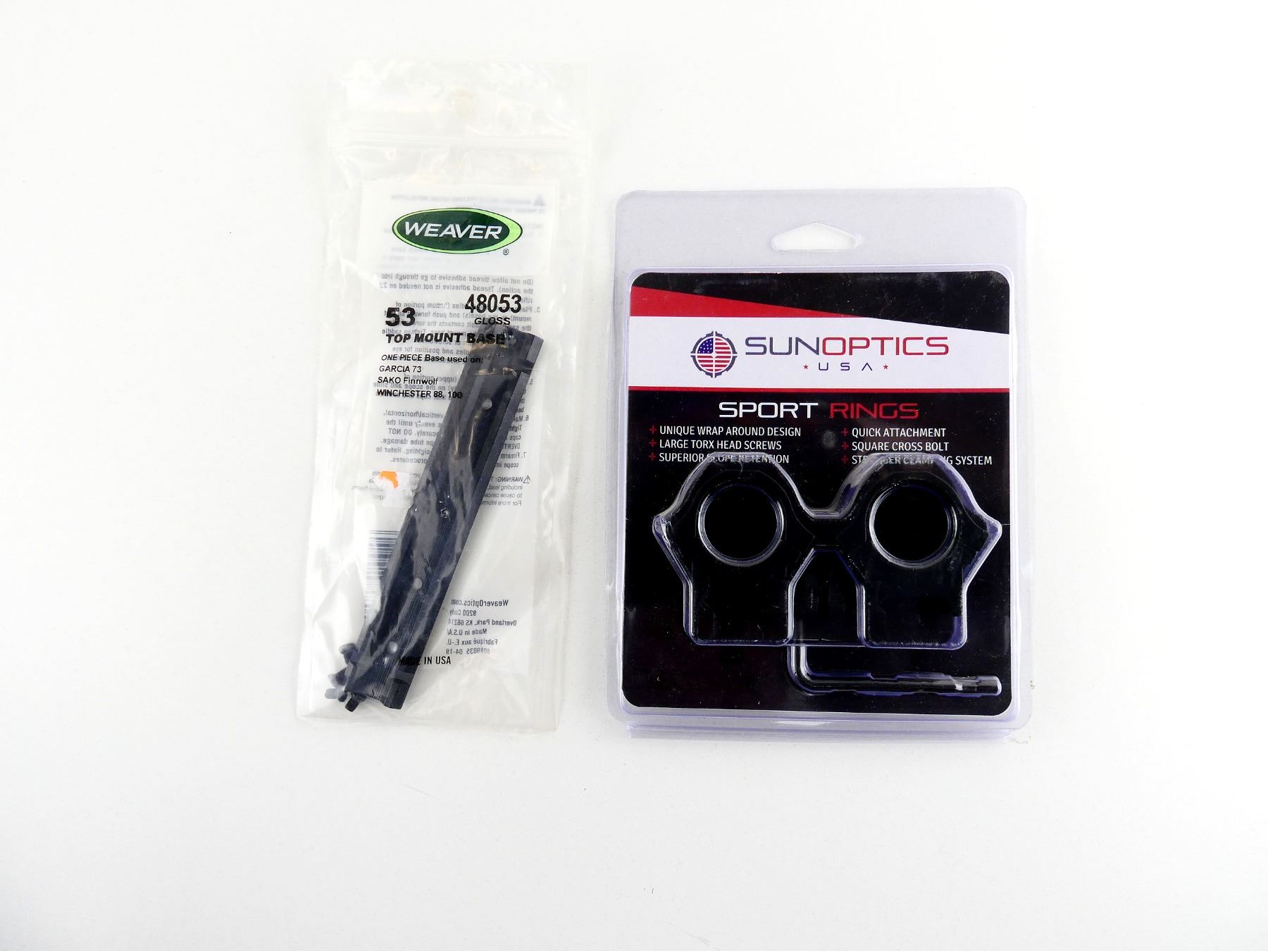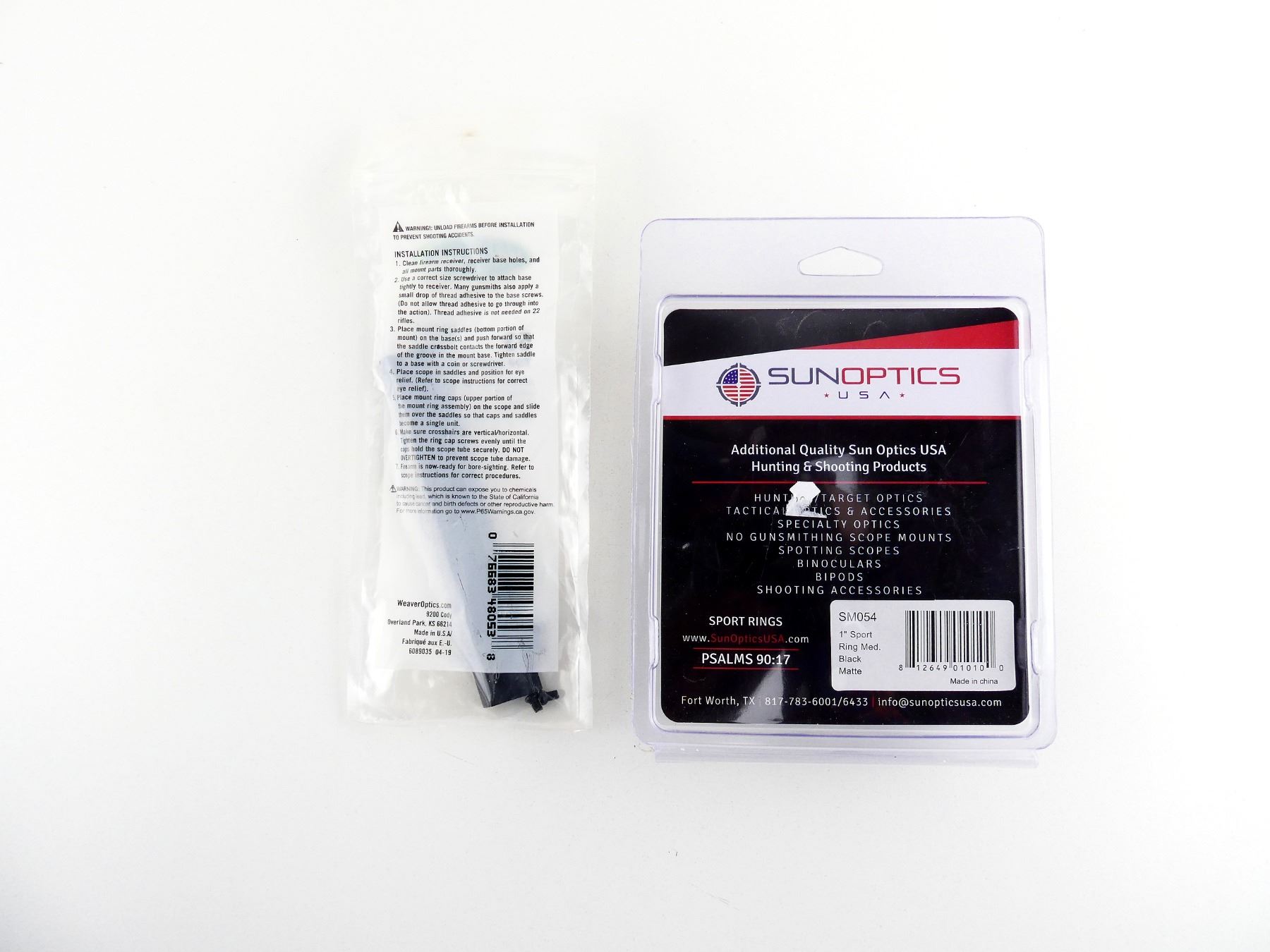 SUNOPTICS SPORT 1" SCOPE RINGS AND WEAVER SCOPE RAIL LOT
