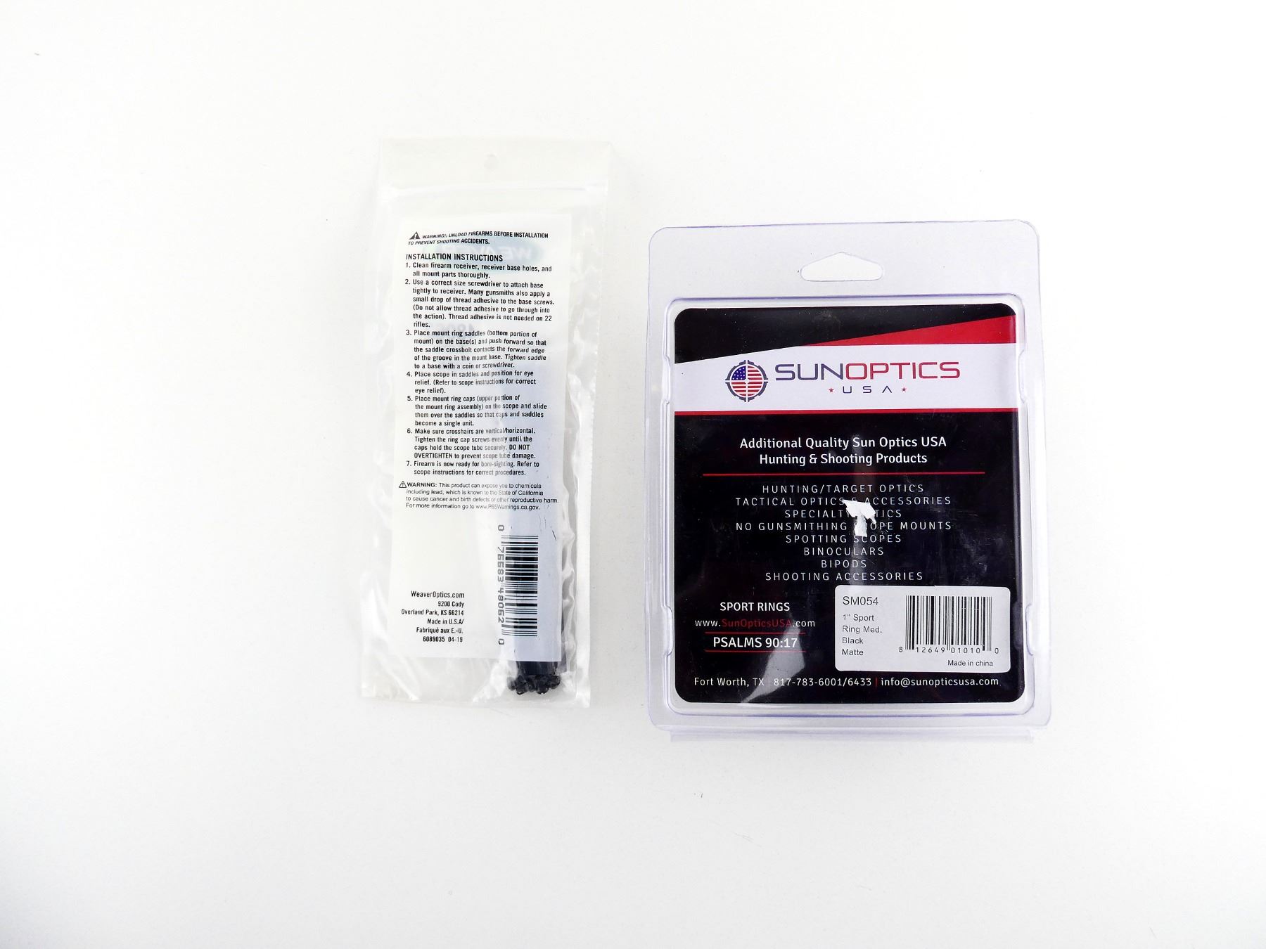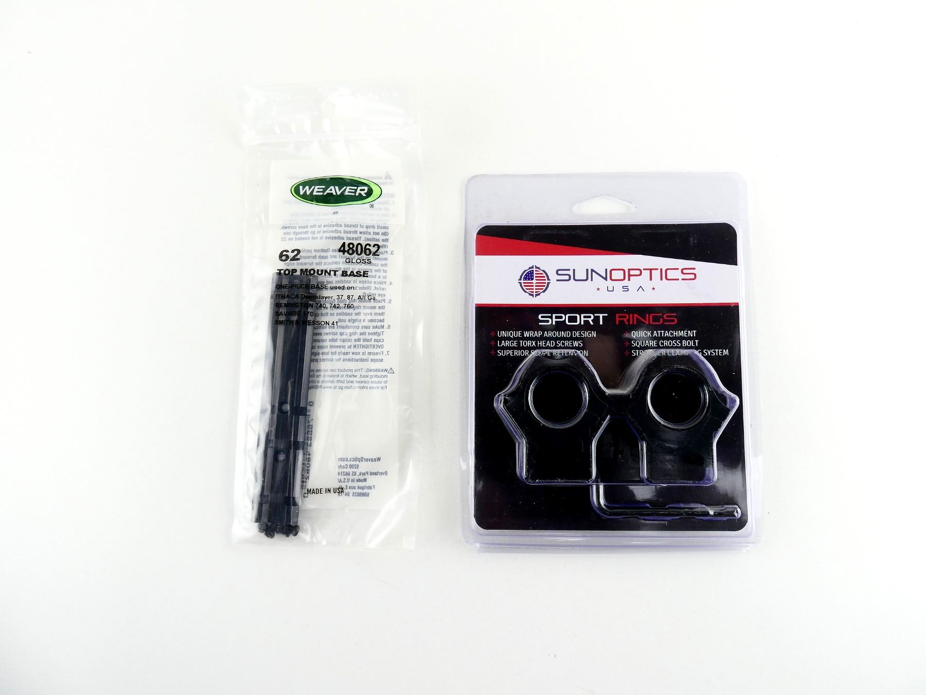 SUNOPTICS SPORT 1" SCOPE RINGS AND WEAVER SCOPE RAIL LOT