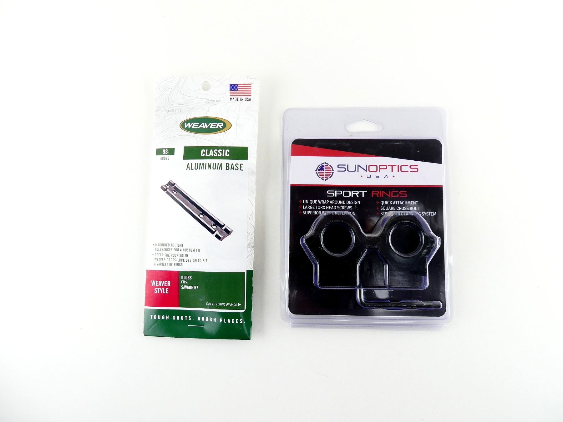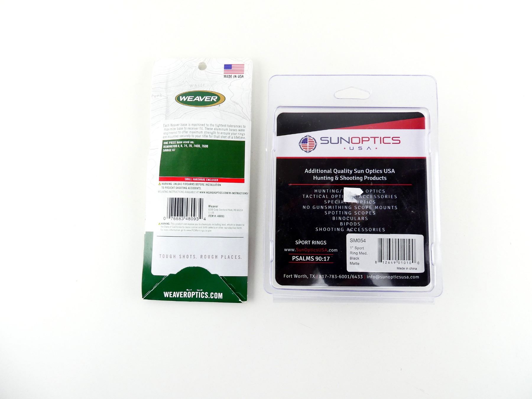 SUNOPTICS SPORT 1" SCOPE RINGS AND WEAVER SCOPE RAIL LOT