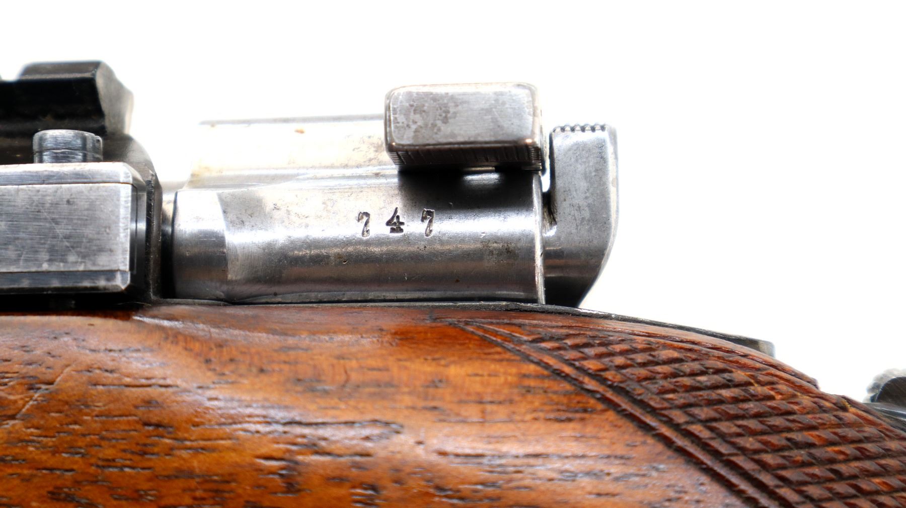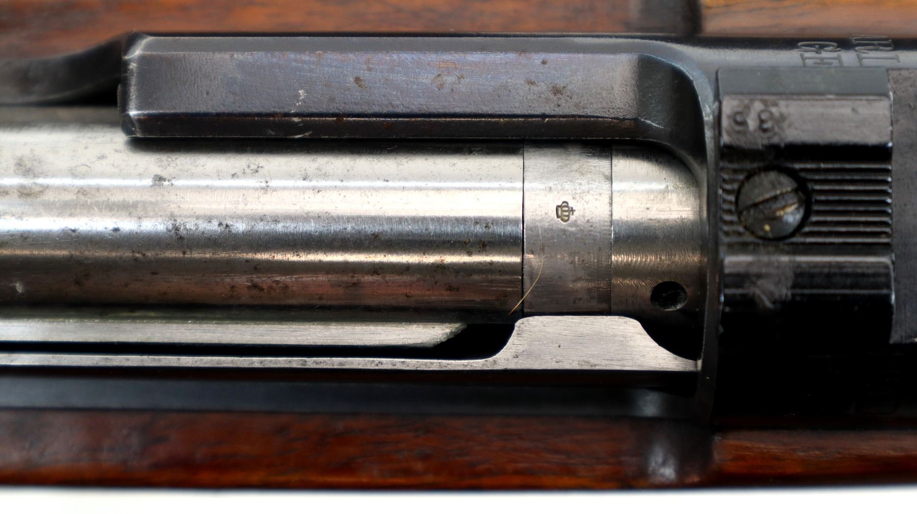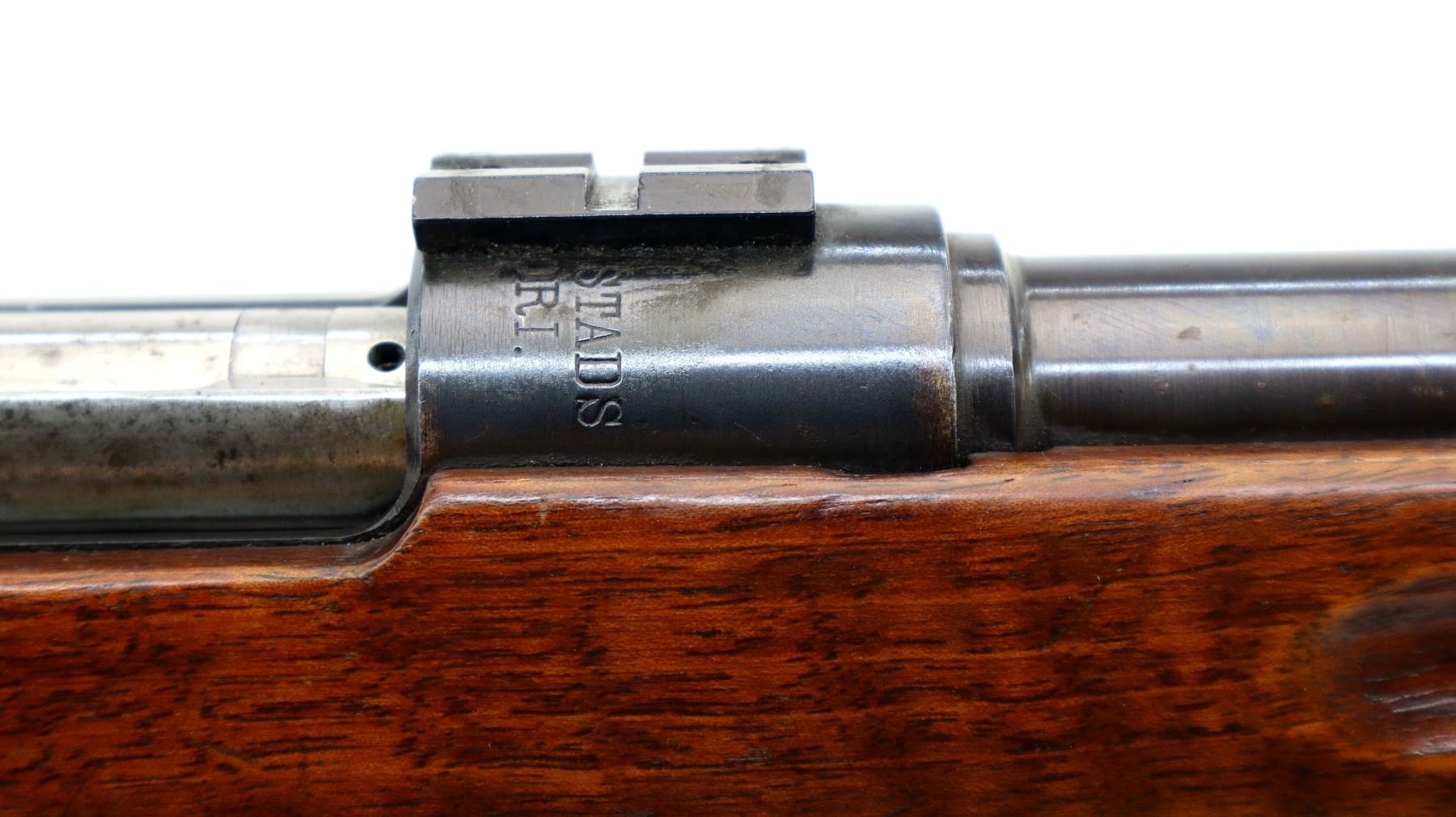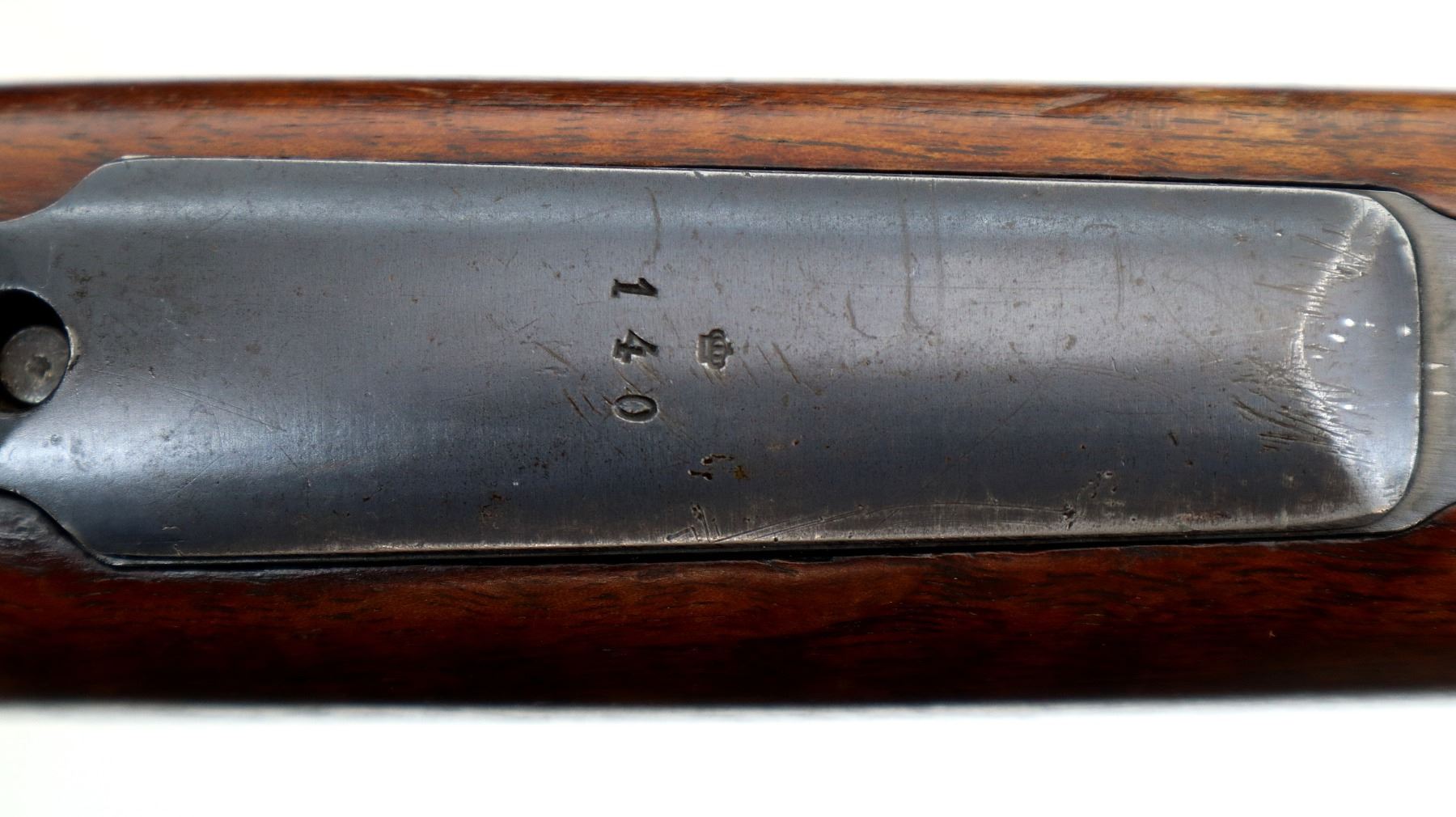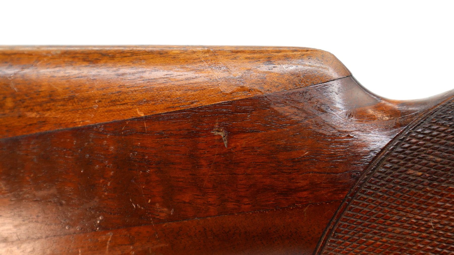 Wear: Metal finish shows some light rust speckles, scratches, handling marks and wear. Stocks show marks, scratches and wear.