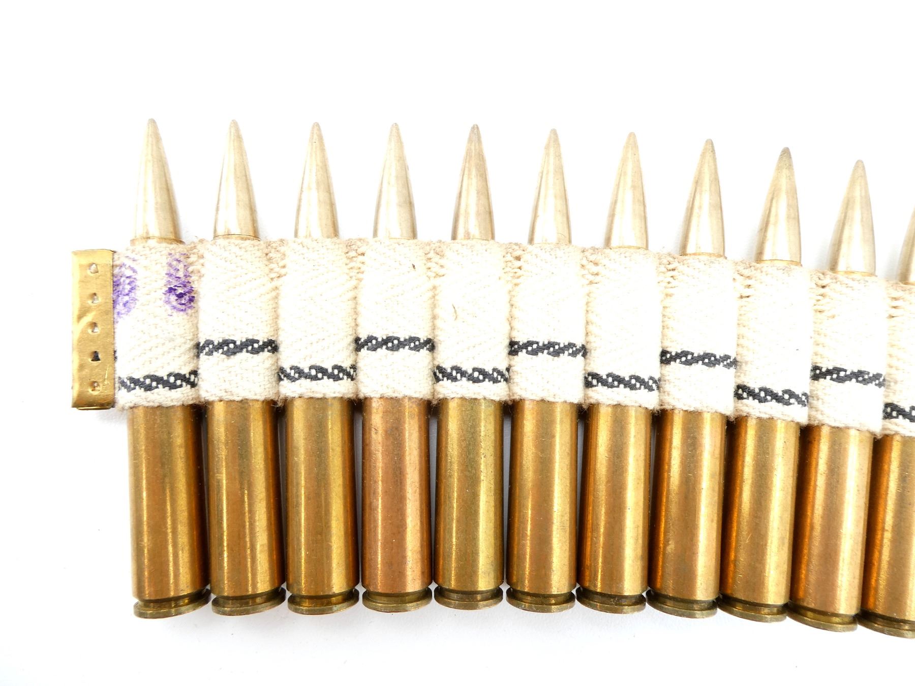 LOT INCLUDES; APPROX. (250) RNDS, FMJ, ON BROWNING 1919 MACHINE GUN CLOTH BELT, APPROX. OVERALL LENGTH 143", SEE PHOTOS.